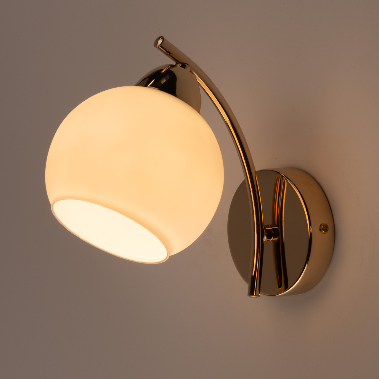 Настенное бра Грация отличается лаконичным дизайном и современными материалами. Металлическое основание, выполненное в красивом золотистом цвете благодаря гальваническому покрытию, добавляет изысканности и стиля. Золотистый оттенок гармонично сочетается с различными палитрами интерьеров, создавая элегантный акцент.Плафон из белого матового стекла обеспечивает мягкое рассеивание света, что позволяет избежать резких теней и создает комфортную атмосферу. Такой плафон подходит для использования в различных стилях интерьера, включая минимализм, хай-тек, неоклассику и сканди.