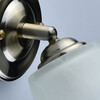 Основание светильника выполнено из металла и гальванизировано в цвет античной бронзы. Светильник декорирован плафонами, выполненными из алебастрового стекла.