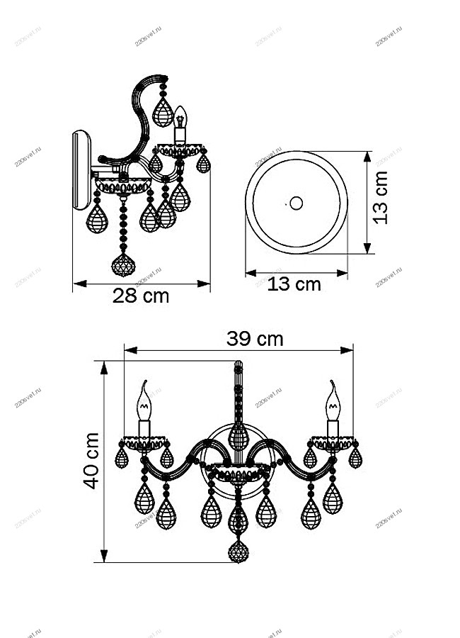 - Форма плафона: Без плафона, Свеча