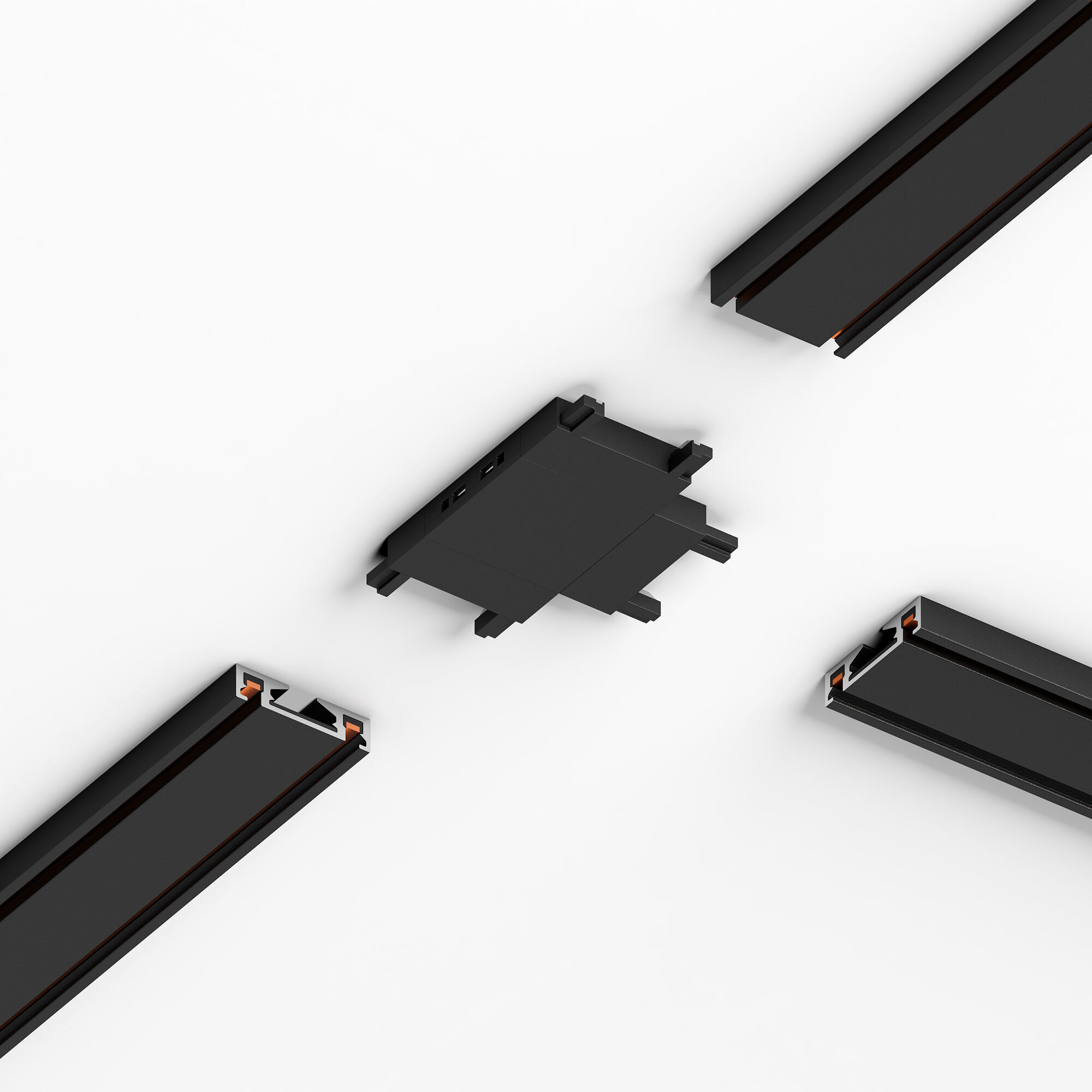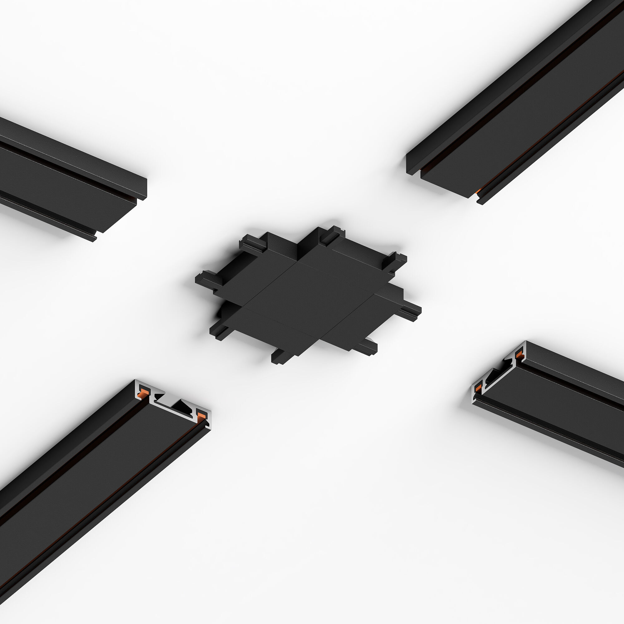 Четырёхсторонний соединитель для накладного шинопровода Flat Magnetic - это электромеханическое устройство, используемое для создания электрического соединения между шинопроводами.