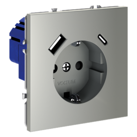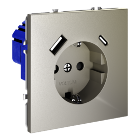 Розетка встраиваемая с заземлением и защитными шторками, 16А, с USB, A+С Voltum S70 VLS040504 (шелк)