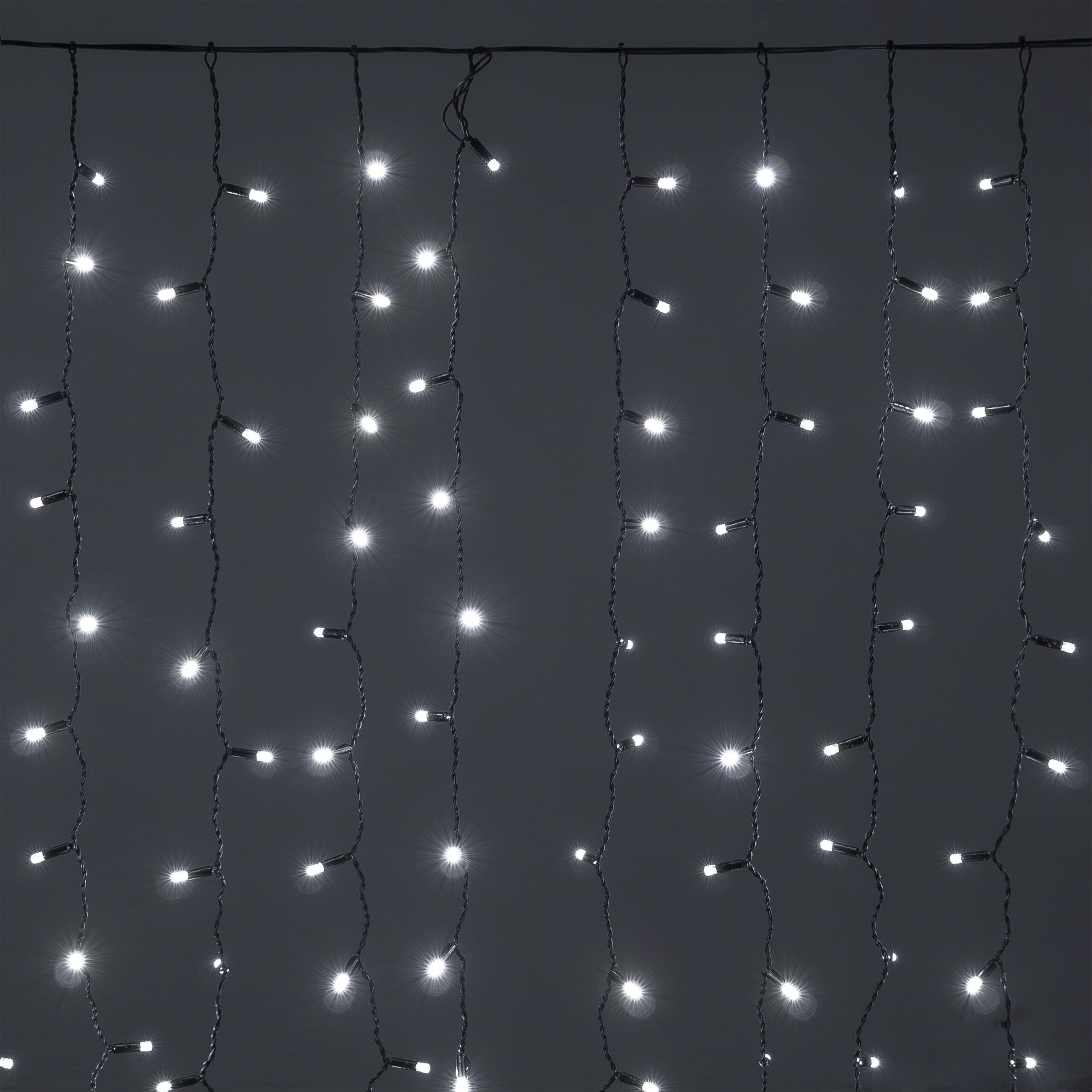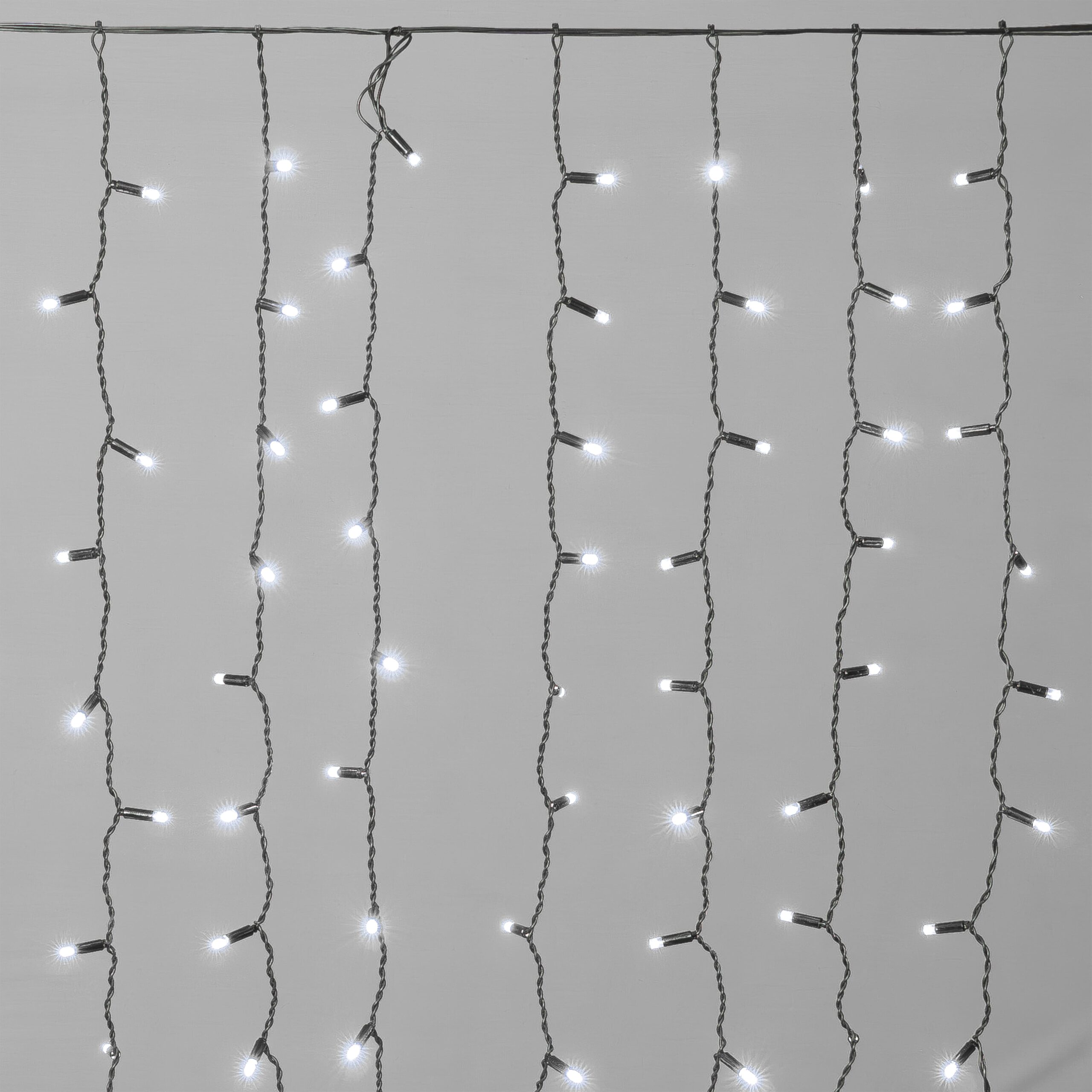 Купить "Гирлянда Занавес Облегченный c Колпачком 2 x 1 м Белый 220В, 200 LED, Провод Черный Каучук 2,3мм, IP65 LTC ECO200NOT-1-2W"