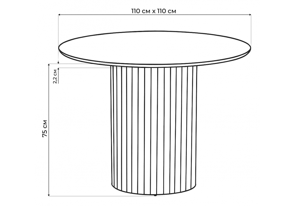 Материал каркаса - металл; Материал столешницы - Керамика; Цвет ножек - черный; Ширина - 110; Высота - 75; Длина - 110;