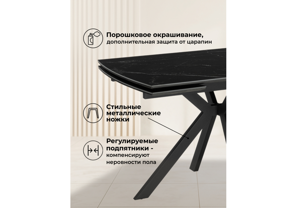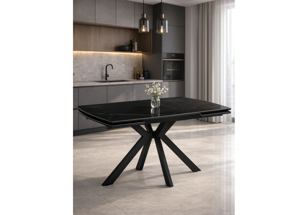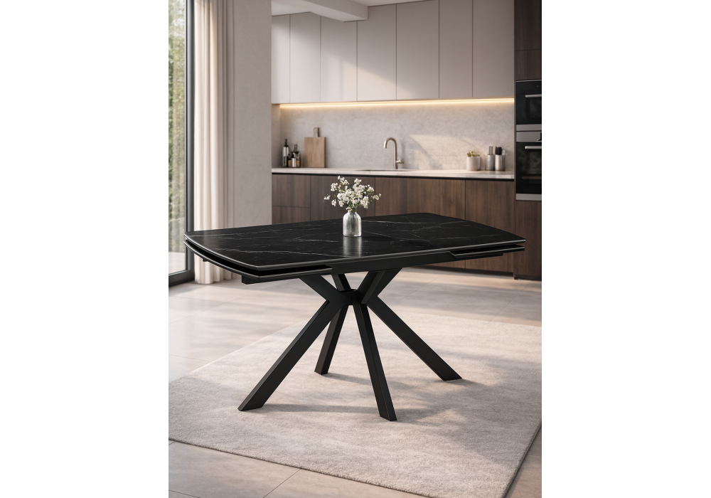 Керамический стол раздвижной 120(180)x8 Woodville Катчел-2 черный мрамор / черный 632673 в Тюмени
