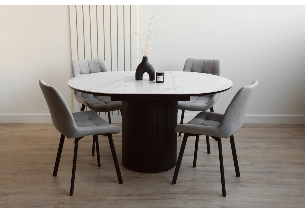 Керамический стол раскладной Woodville Лорен 100(140) snow white / черный 664691 в Тюмени