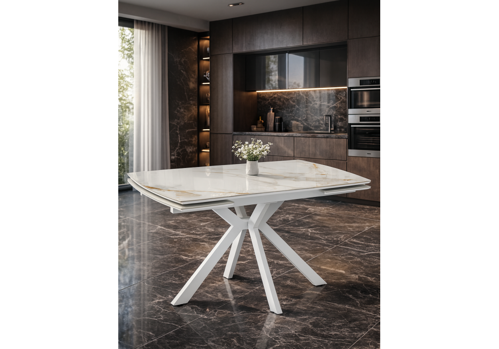 Купить "Керамический стол раздвижной 120(180)x80 Woodville Катчел-2 calacatta gold / белый 632671"