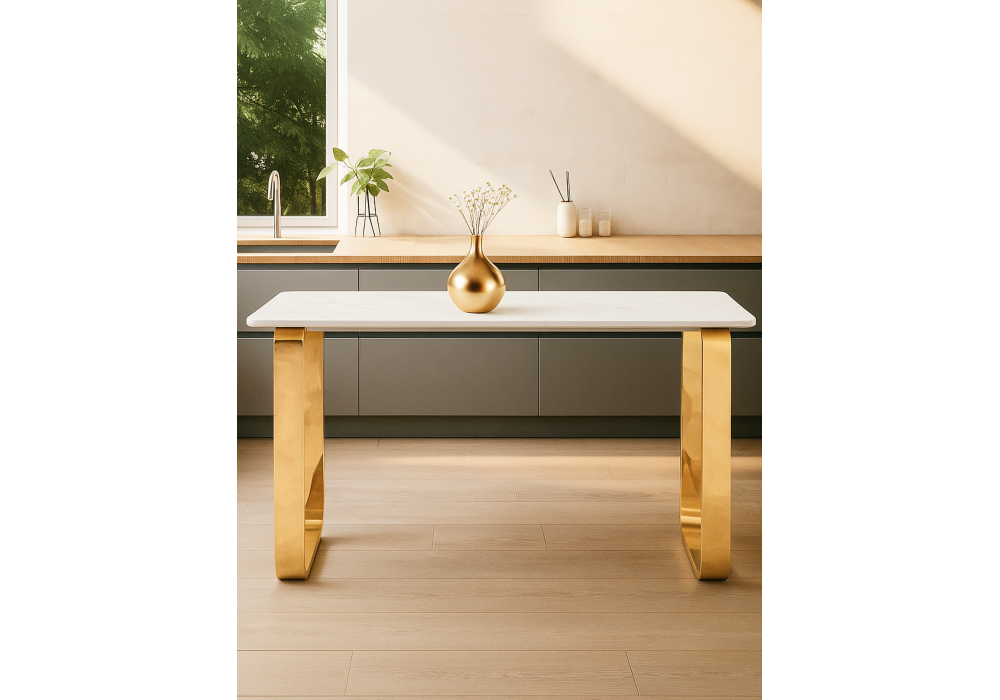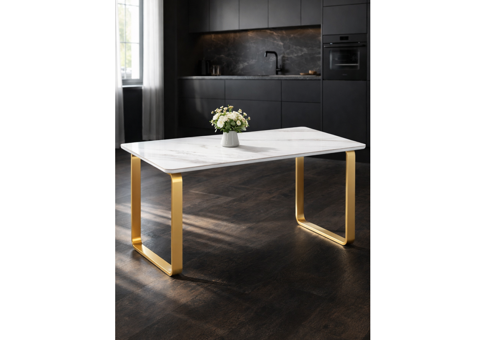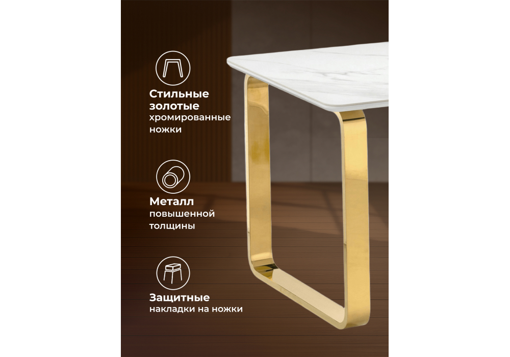Керамический стол Woodville Селена 4 160х90х77 белый мрамор / золото 572187 в Тюмени