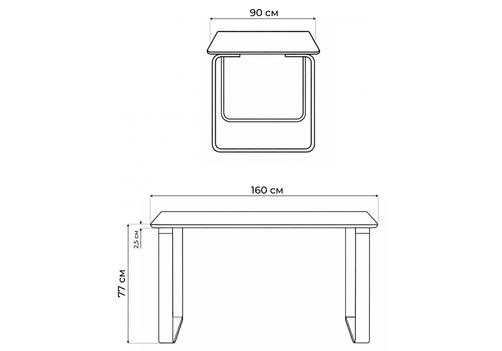Толщина столешницы: 2,5 см. Материал каркаса - металл; Материал столешницы - Керамика; Ширина - 90; Высота - 77; Длина - 160;