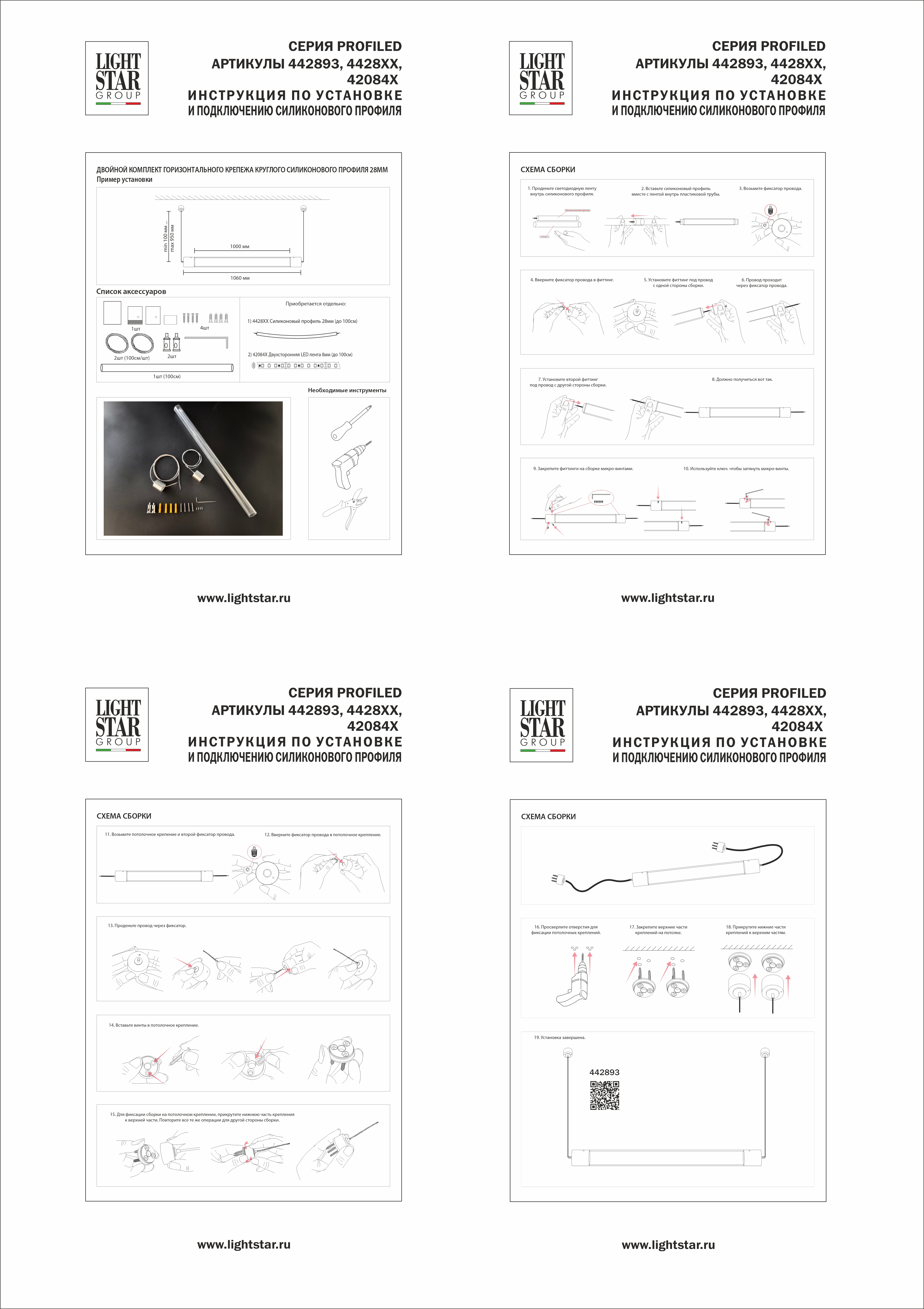 Комплект подвесного гориз крепежа двойной с трубкой Lightstar Profiled 442893 в Тюмени