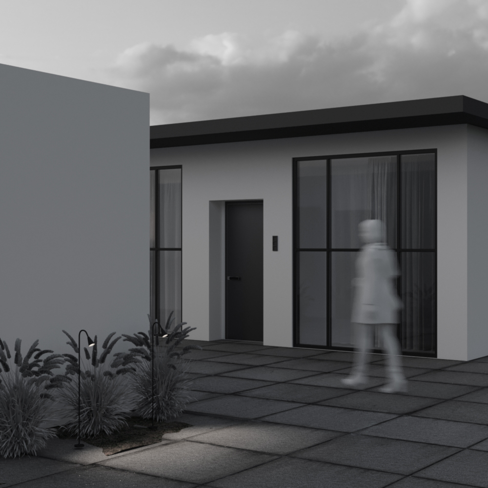 Материал арматуры - алюминий и стекло, цвет - черный матовый. LED-источник света, мощность 3W, световой поток 250 Lm, цветовая температура 3000K, CRI 80, угол рассеивания 100°, IP65. Ландшафтный светильник.