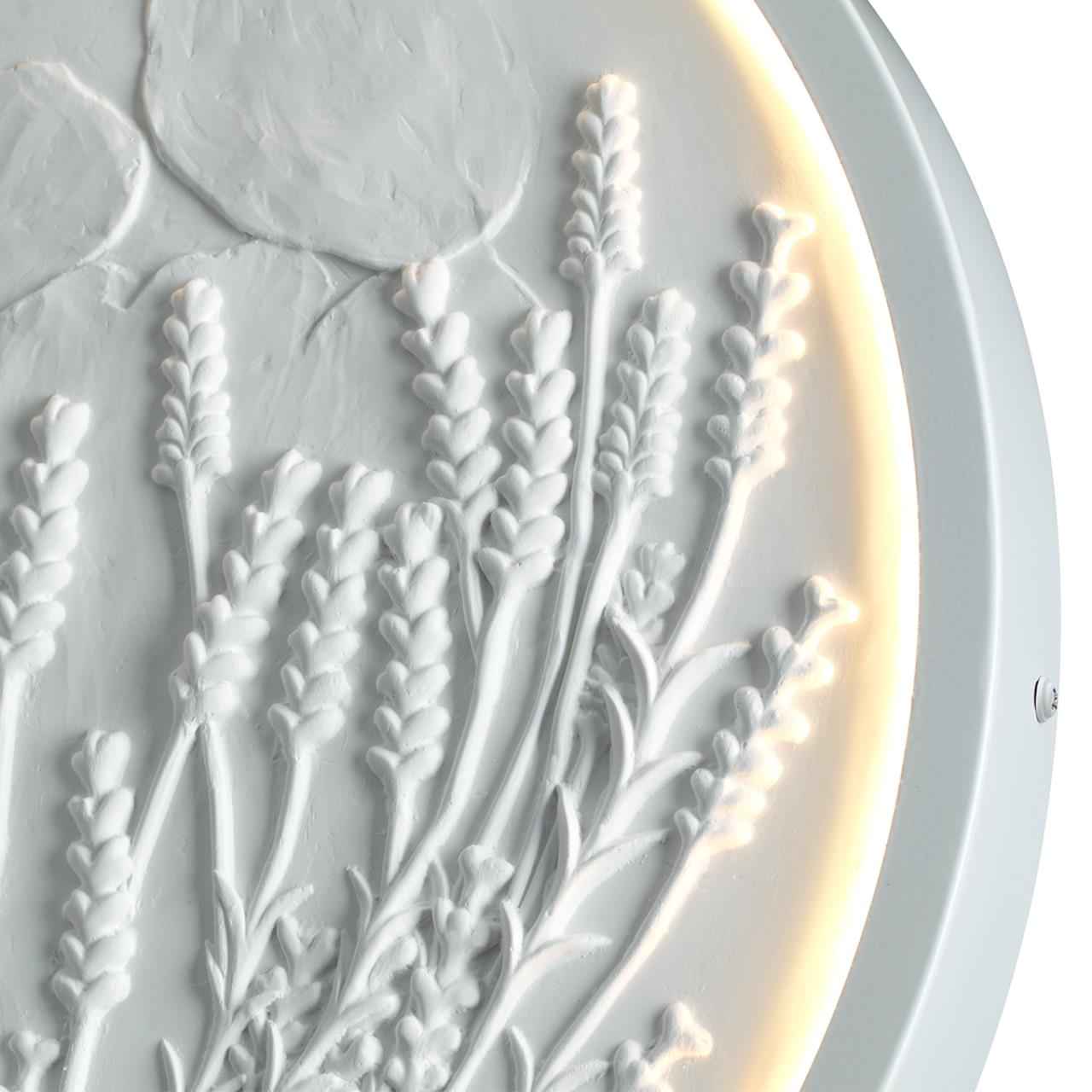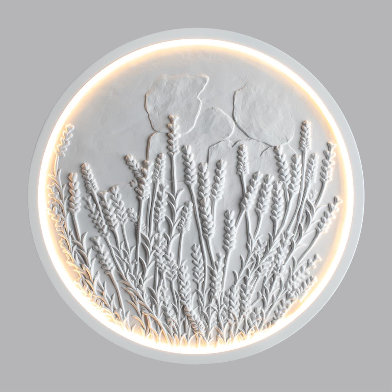Lavanda — светильник диаметром 400 мм, который был вдохновлён популярными в интерьерах ботаническими барельефами. Мягкая подсветка подчёркивает каждую травинку, создавая живую и тактильную атмосферу.