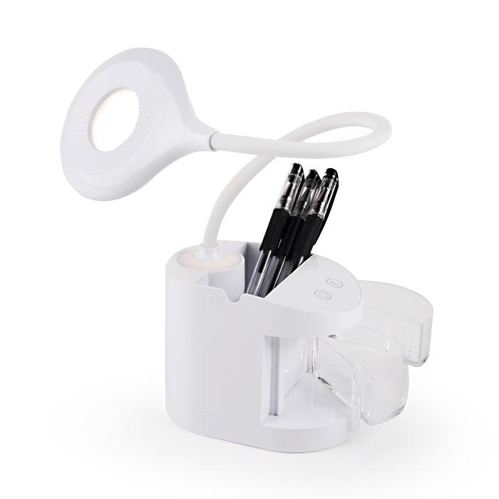 Светодиодная настольная лампа DE561 оформлена в современном стиле, белого цвета и выполнена по стандартам современных технологий. Данная модель оснащеня встроенной аккумуляторной батареей, USB портом, а так же органайзером и режимом диммирования, что создаст комфортное освещене для любого потребителя.
