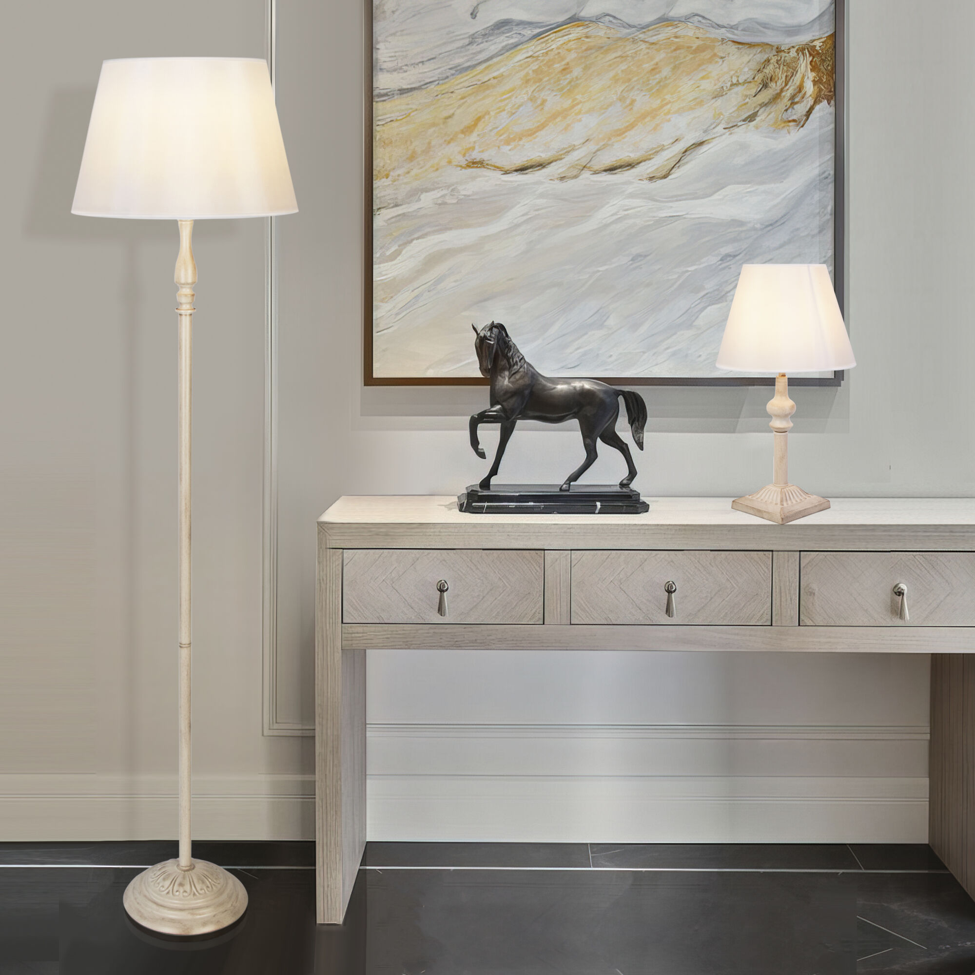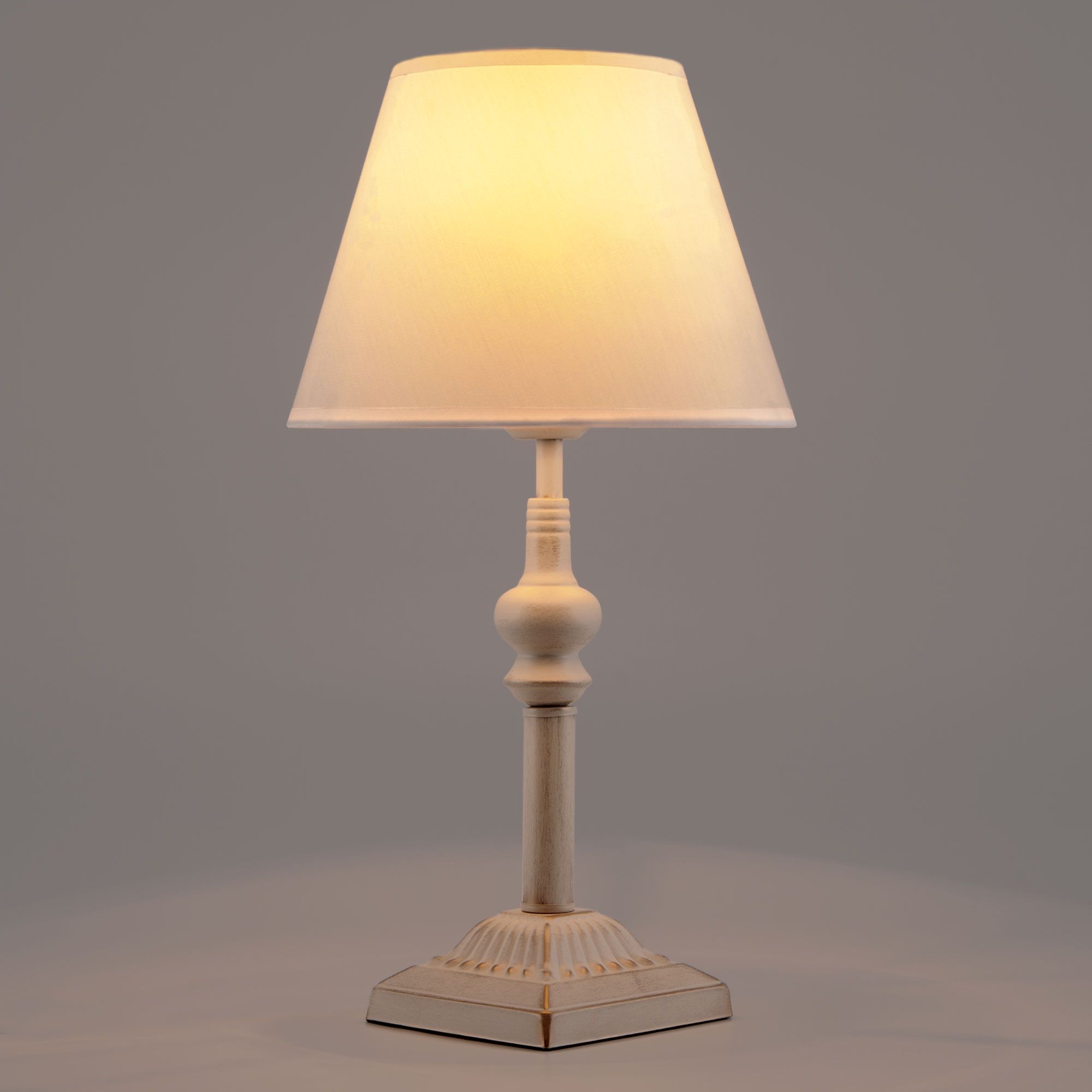 Благодаря белому тканевому абажуру настольная лампа создает мягкое рассеянное свечение, подходящее для комфортного чтения книг в вечернее время. Прочный металлический корпус светильника устойчив к механическим воздействиям, а защитное покрытие обеспечивает надежную электроизоляцию и презентабельный внешний вид.