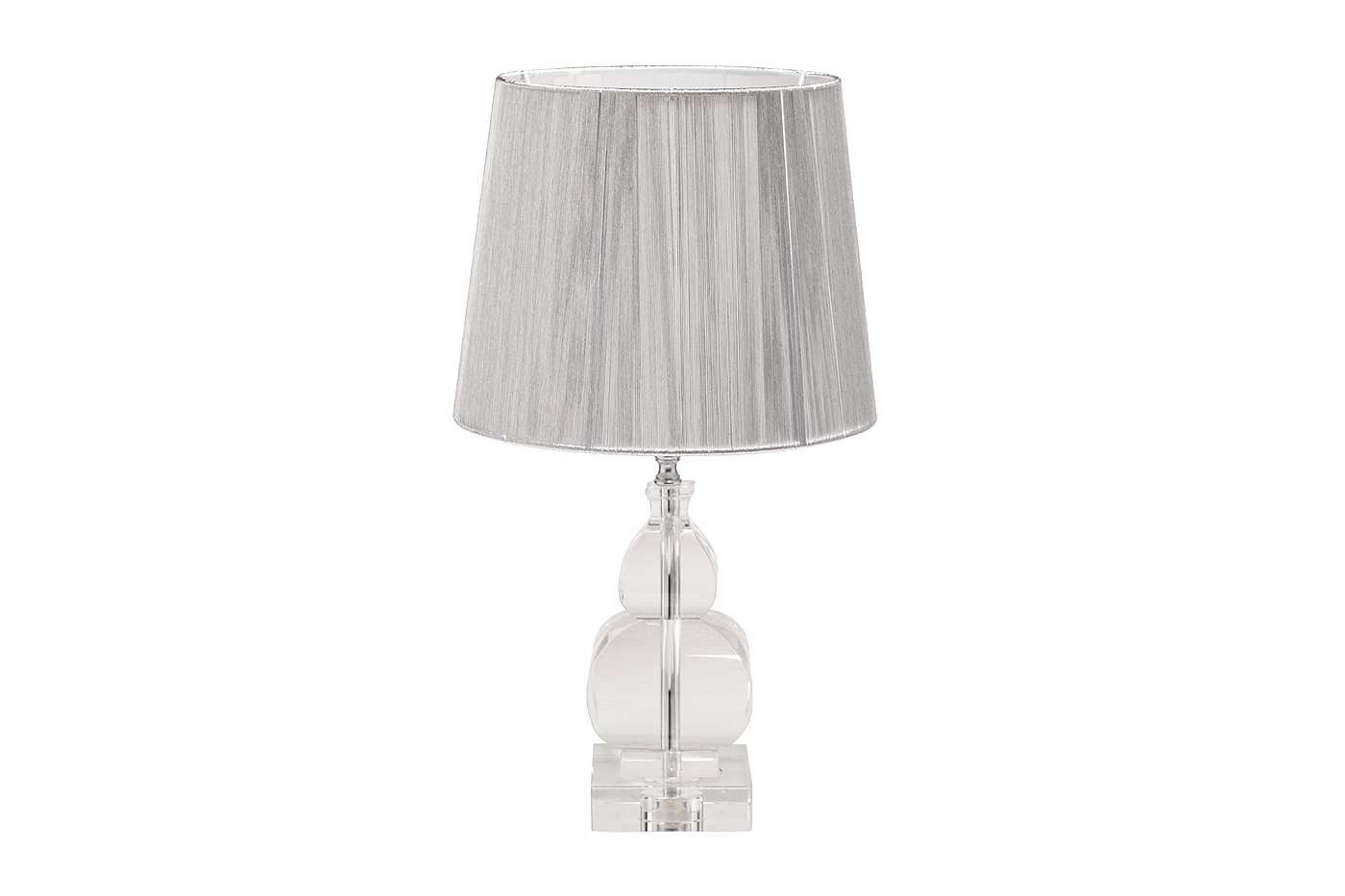 Стеклянная настольная лампа – функциональное украшение интерьера. Эффектный плафон серебряного цвета обеспечивает мягкий рассеянный свет и создает романтическую атмосферу в комнате. Основание из прочного стекла делает светильник воздушным и оригинальным. Эта настольная лампа для спальни будет органично смотреться на прикроватной тумбочке, туалетном столике, на полке или консоли. Она сочетается с любой современной мебелью и декором, отличается безупречным качеством исполнения.