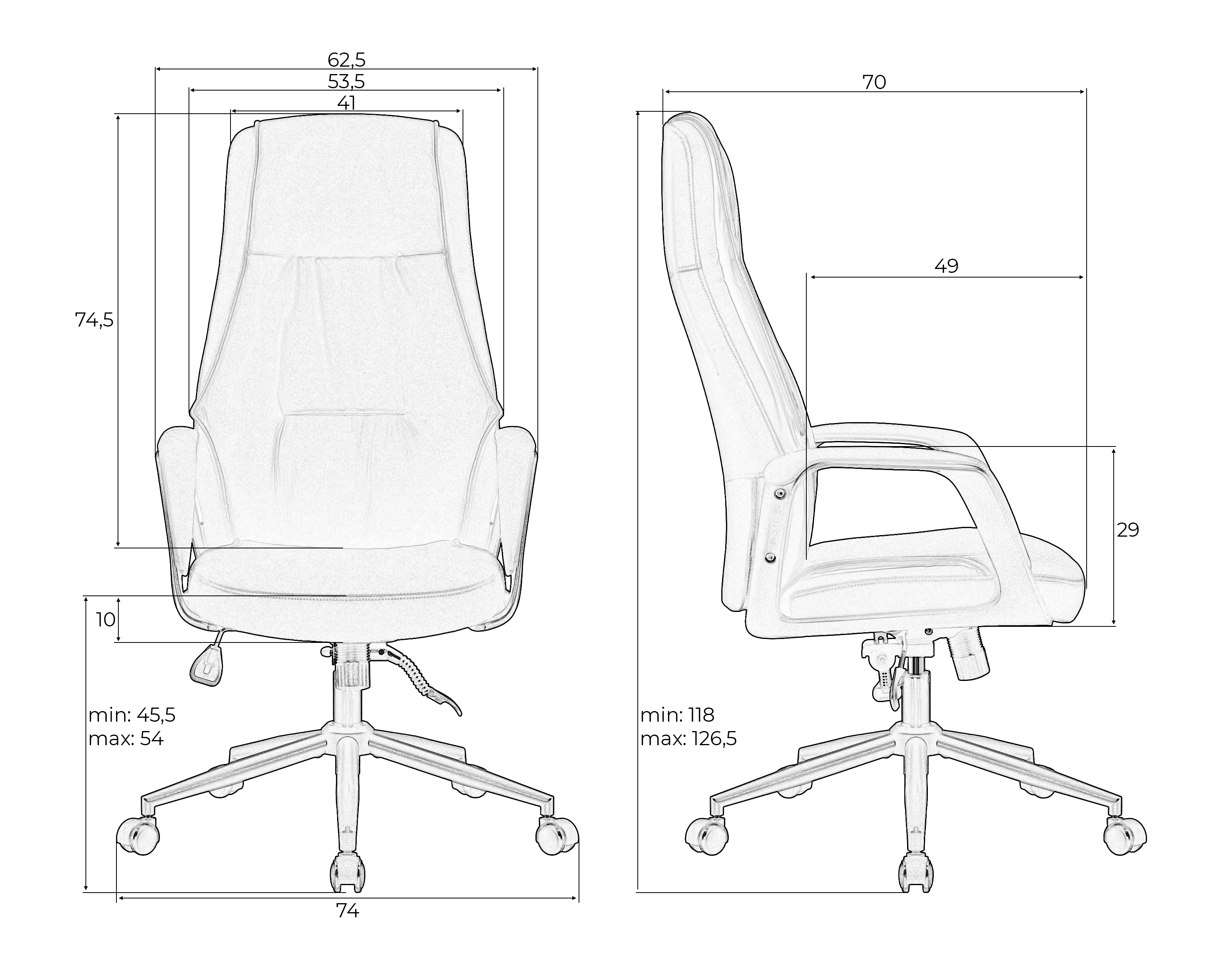 - Высота сиденья max: 540