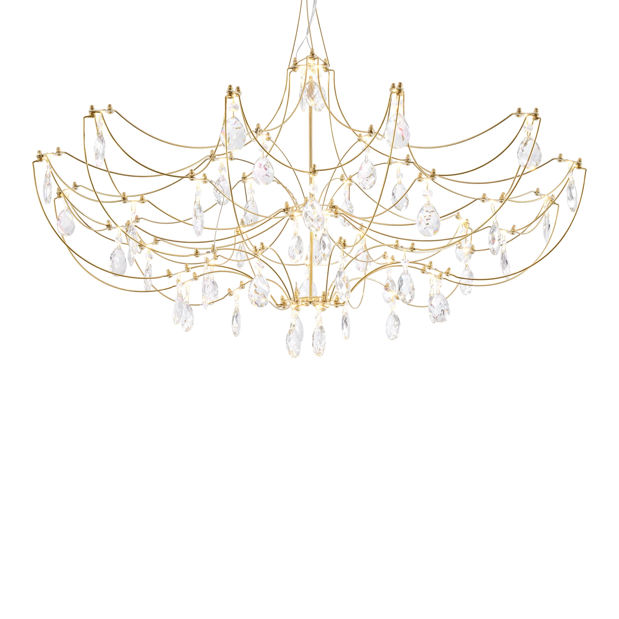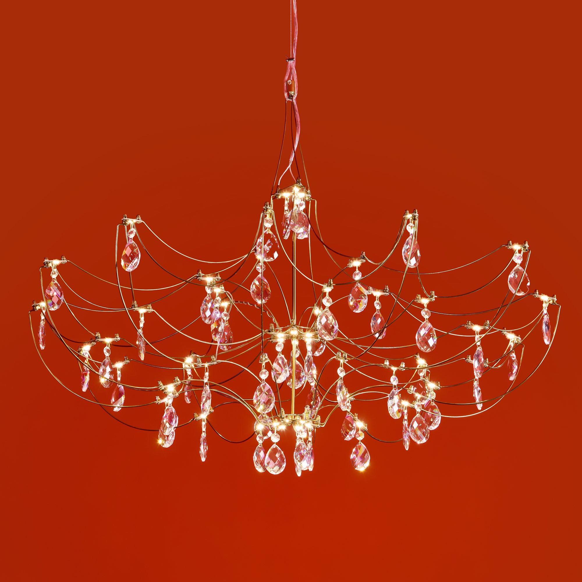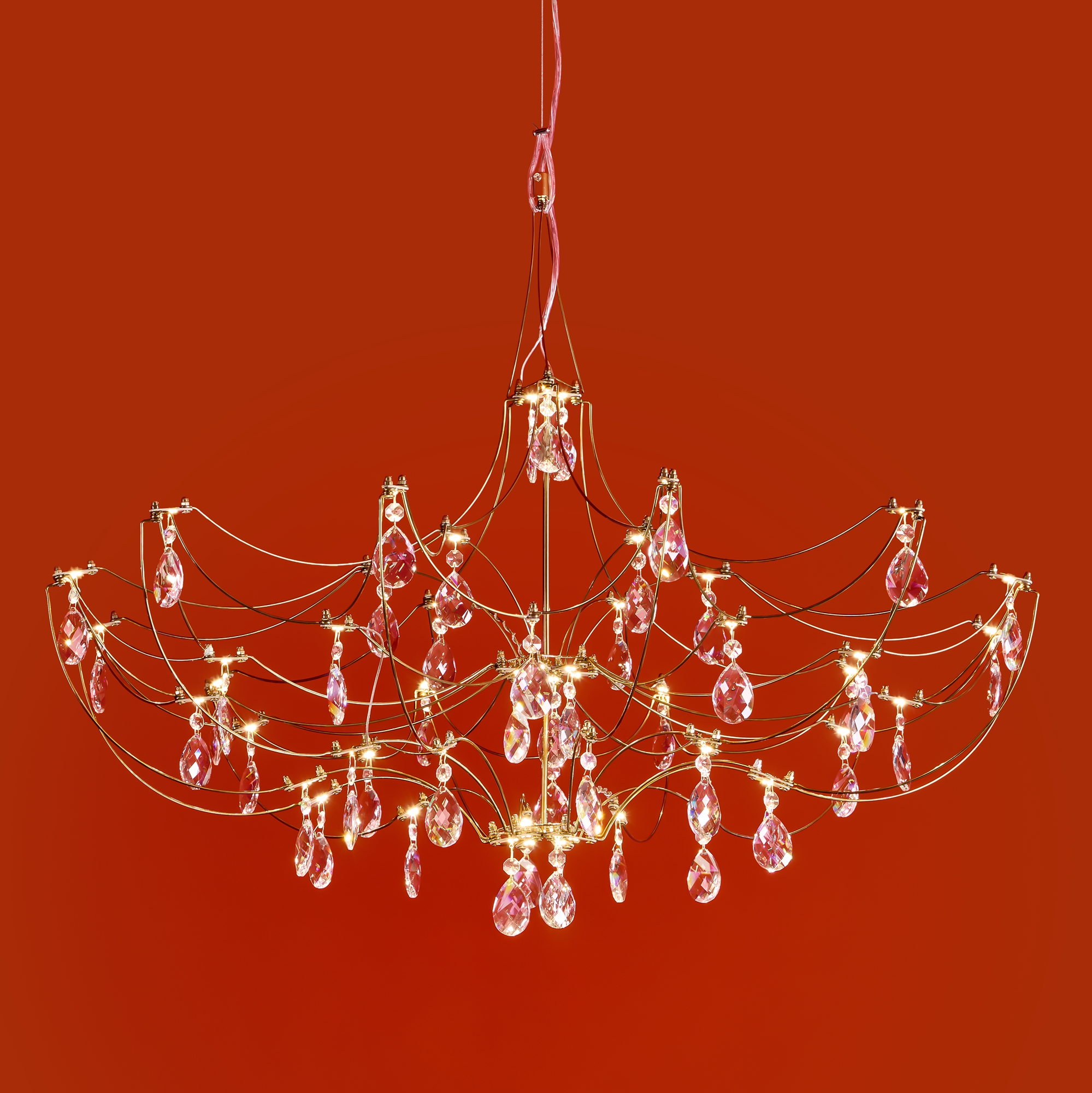 Арматура - хромированная нержавеющая сталь. В соединениях арматуры Led источник света и декоративные элементы из хрусталя в виде капелек. Цветовая температура 3000К.