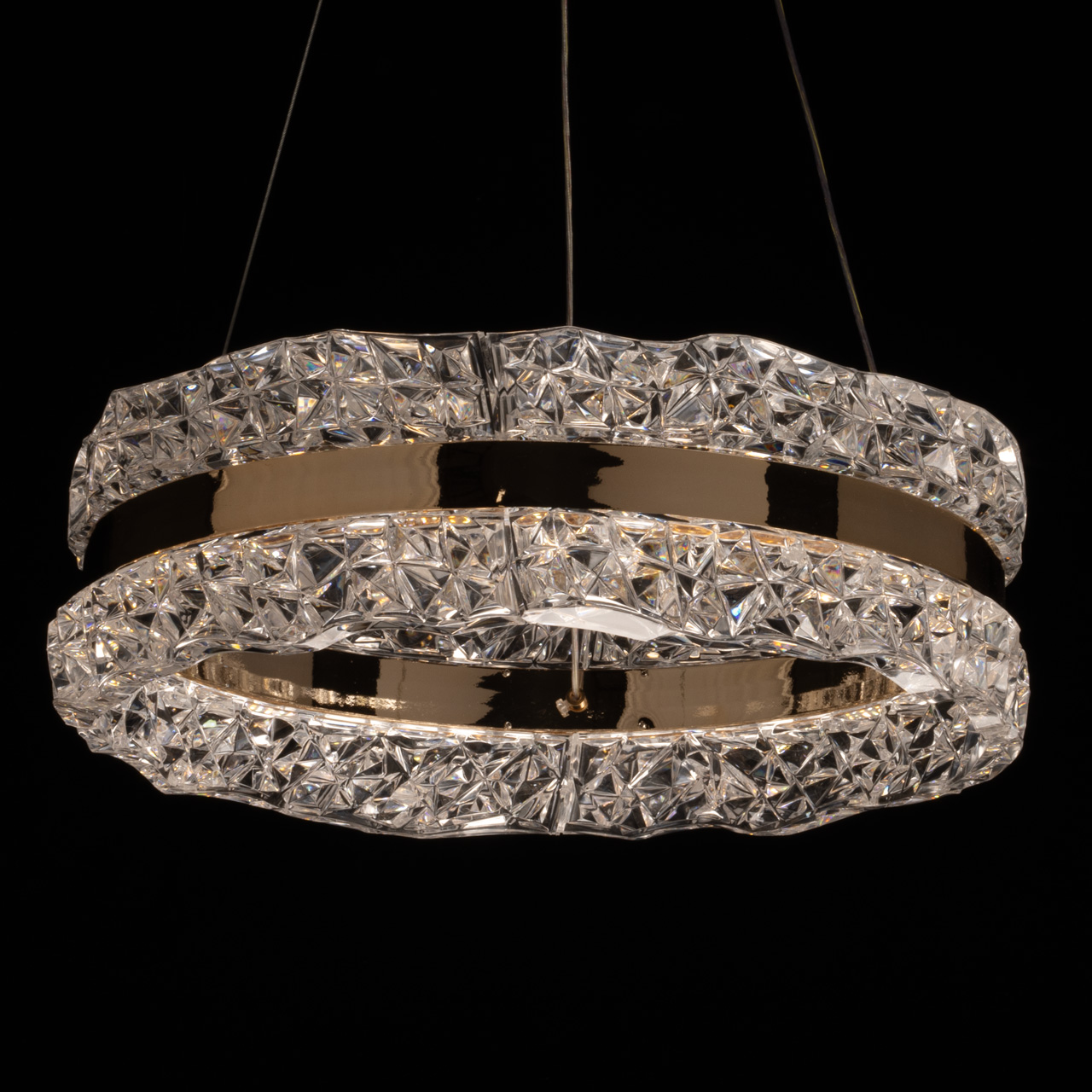 Потолочный светильник Платлинг подвешен на прочных металлических тросах, что придаёт ему лёгкость и воздушность. Общая высота светильника составляет 90 см, что делает его уместным даже в помещениях с высокими потолками. Основание светильника выполнено из качественного металла и гальванизировано в элегантный золотой цвет. Этот золотистый оттенок придаёт изделию роскошный вид и гармонично сочетается с различными стилями интерьера — от классического до современного минимализма. Плафон светильника изготовлен из фактурного акрила, который не только обеспечивает равномерное рассеивание света, но и добавляет интересные текстурные акценты в общий дизайн. Светильник Платлинг оснащён встроенными светодиодами мощностью 68W, что обеспечивает яркое и эффективное освещение. Светильник способен осветить помещение площадью до 19 квадратных метров, что делает его идеальным решением для гостиных, кухонь или детских. Светодиоды отличаются долговечностью и экономичностью, что позволяет значительно сократить расходы на электроэнергию по сравнению с традиционными лампами. Светильник оснащен пультом, что дает возможность регулировать температуру света от 3000-6000 K.Лаконичный и современный дизайн светильника Платлинг соответствует актуальным тенденциям в мире освещения. Простота форм и отсутствие лишних деталей делают его универсальным элементом, который легко вписывается в любой интерьер. Светильник может использоваться как самостоятельный источник света, так и в сочетании с другими осветительными приборами, создавая гармоничное освещение в пространстве.