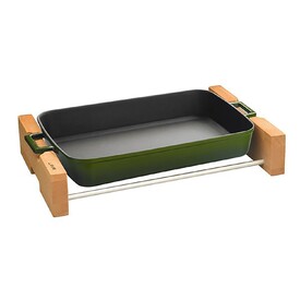ПРЯМОУГОЛЬНОЕ БЛЮДО 22Х30СМ. И ДЕРЕВЯННАЯ ПОДСТАВКА ДЛЯ СЕРВИРОВКИ ЗЕЛЕНОГО ЦВЕТА LAVA