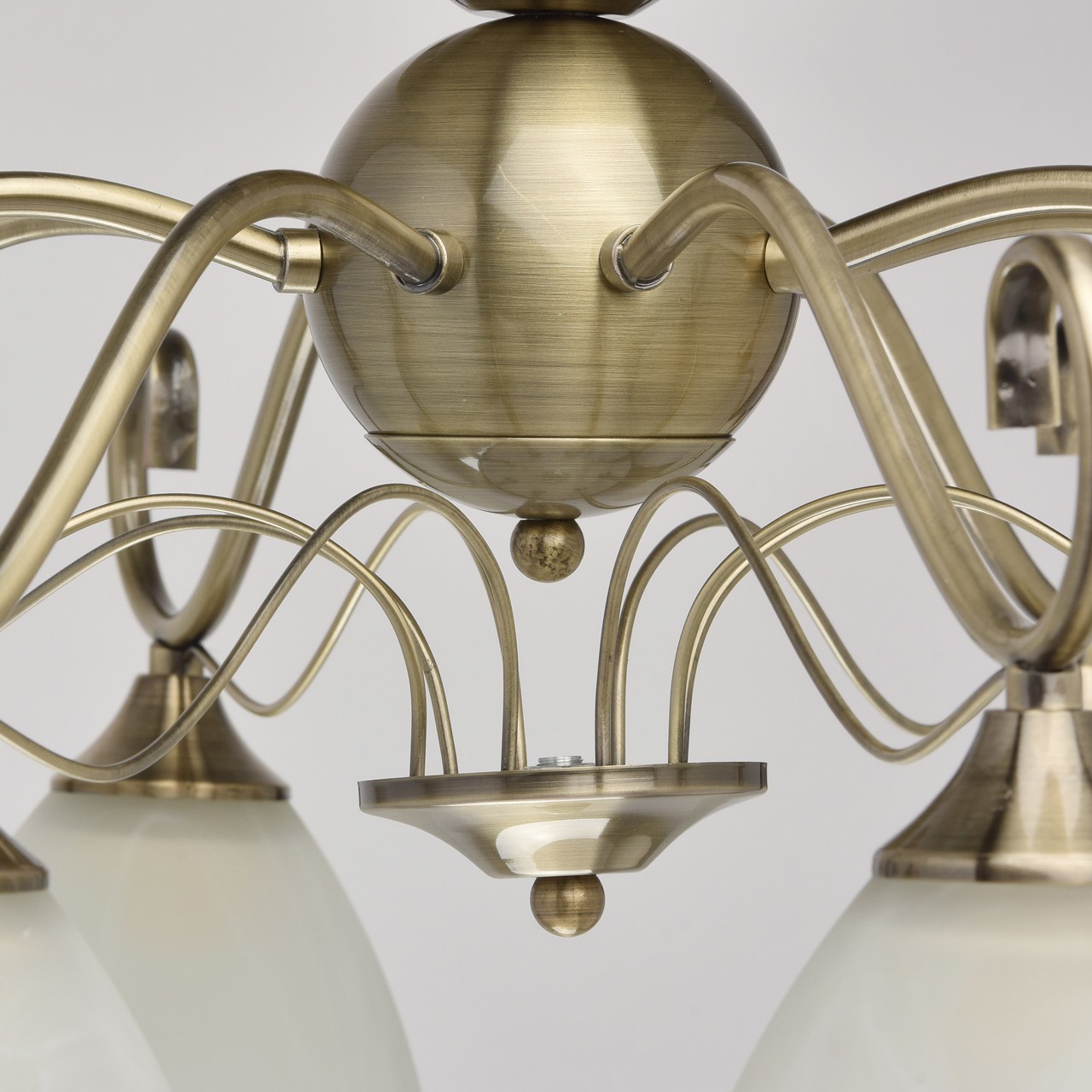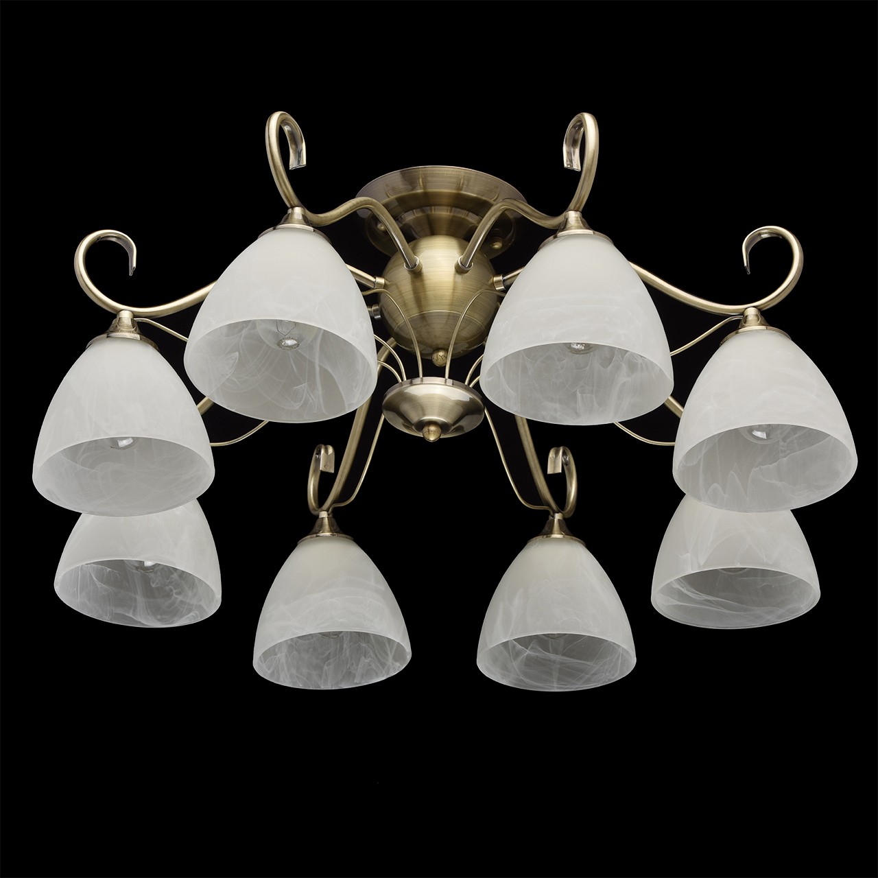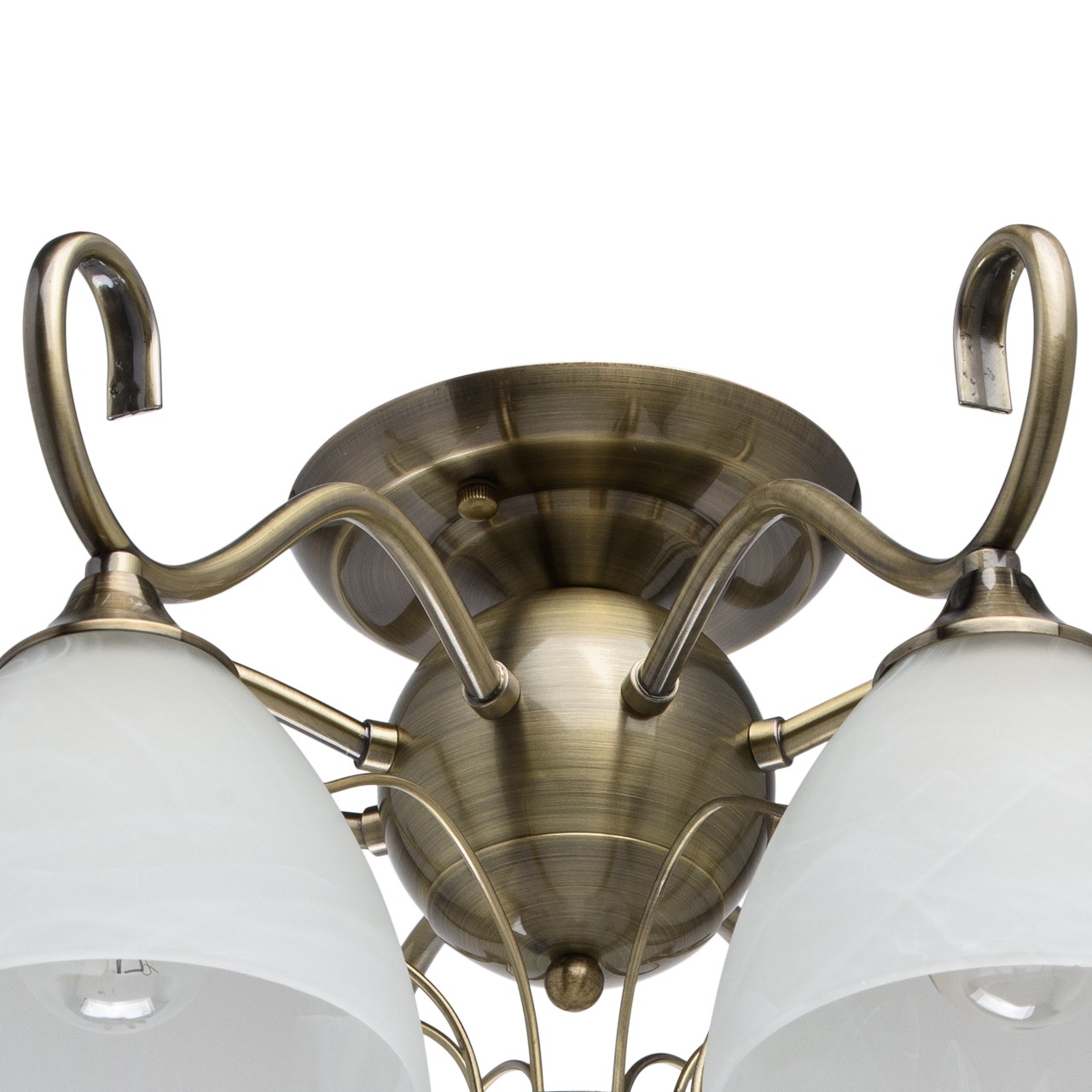 Основание: металл, гальванизирован в цвет античной бронзы.Плафоны: алебастровое стекло, отлито в форму; матирование.
