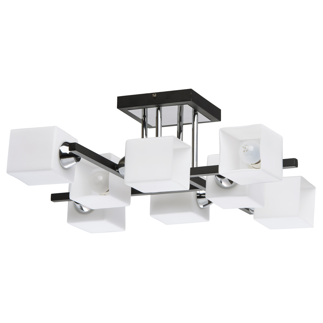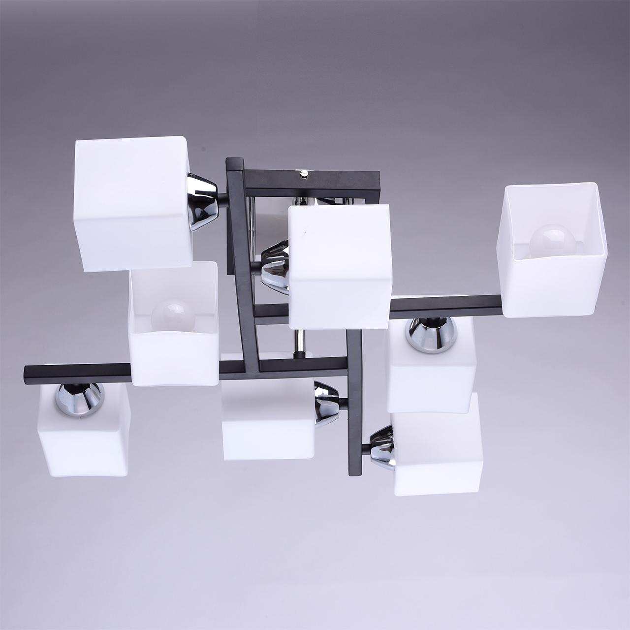 Четкие линии и острые углы, сочетание металла и стекла делают дизайнерский светильник De City Тетро довольно строгим, а разнонаправленные плафоны позволяют ярко освещать каждый уголок гостиной, кухни, спальни или другого помещения в доме.