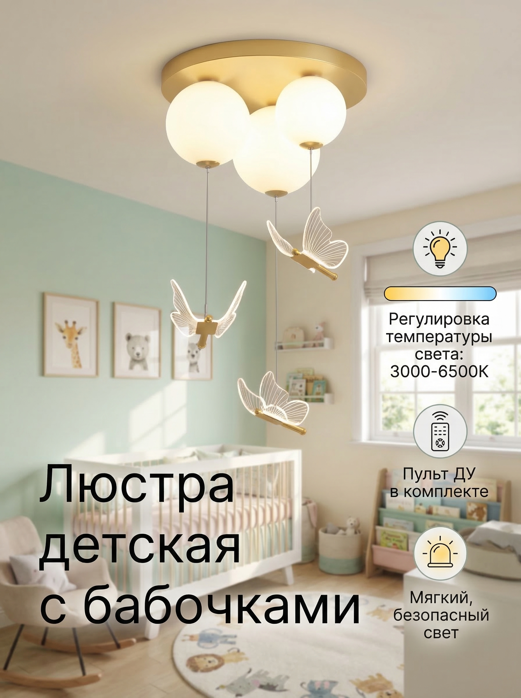 - Декор плафона: Бабочки