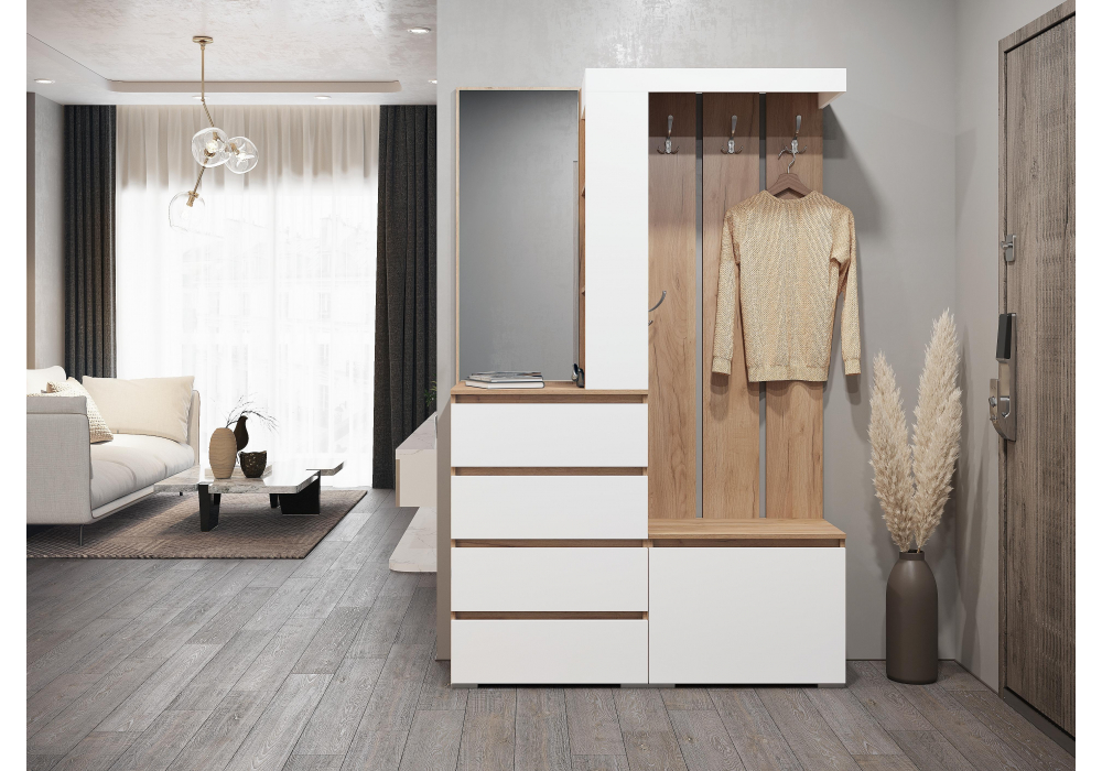 Купить "Прихожая Woodville Элла белый / дуб крафт золото 547989"