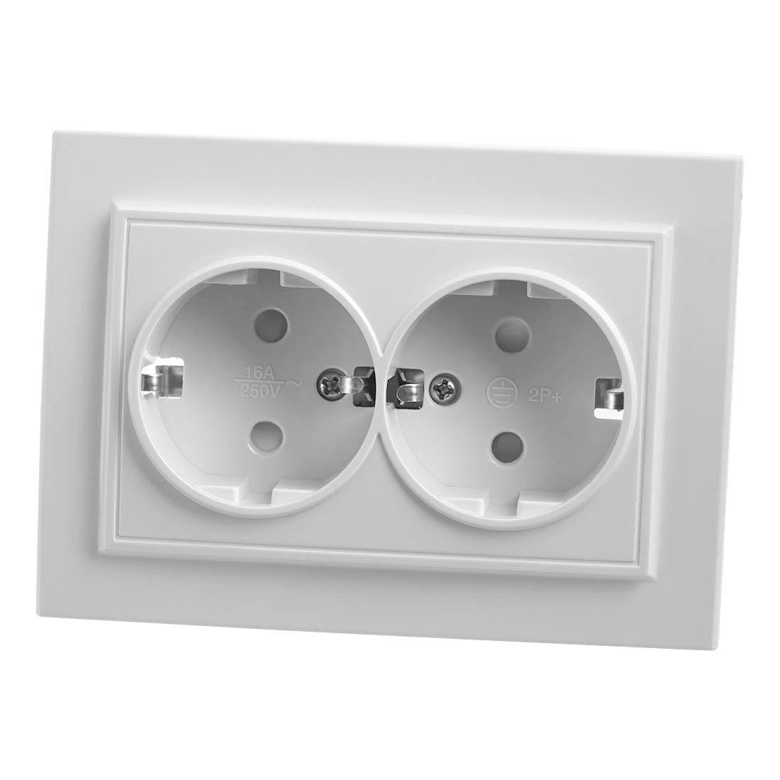 Купить "Розетка двойная Feron Stekker Эрна с/з 16A 250V белый PST16901401 39054"