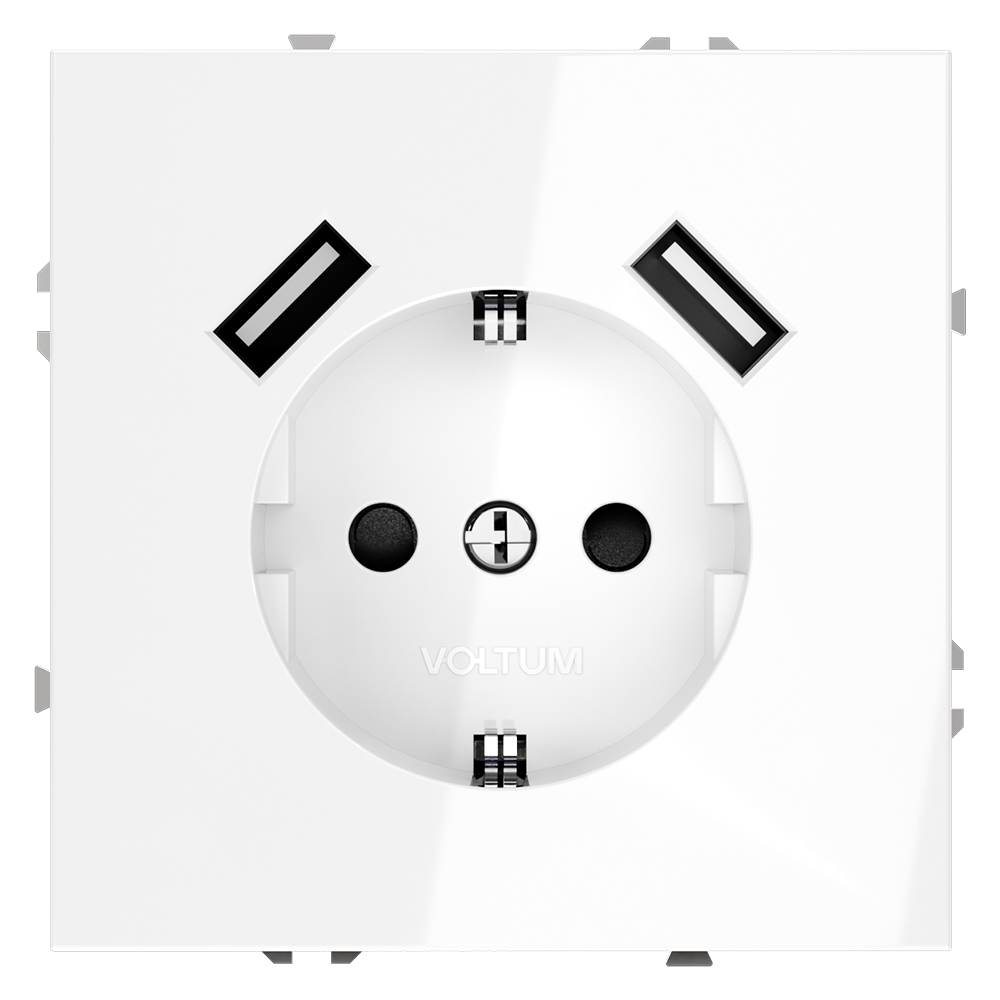 Купить "Розетка встраиваемая с заземлением и защитными шторками, 16А, с USB, A+A Voltum S70 VLS040401 (белый глянцевы"