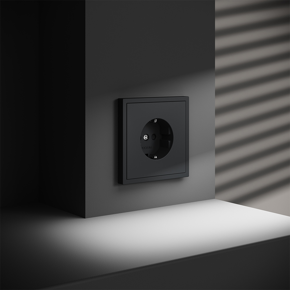 Купить "Розетка встраиваемая с заземлением и защитными шторками, 16А Voltum S70 VLS040207 (графит)"