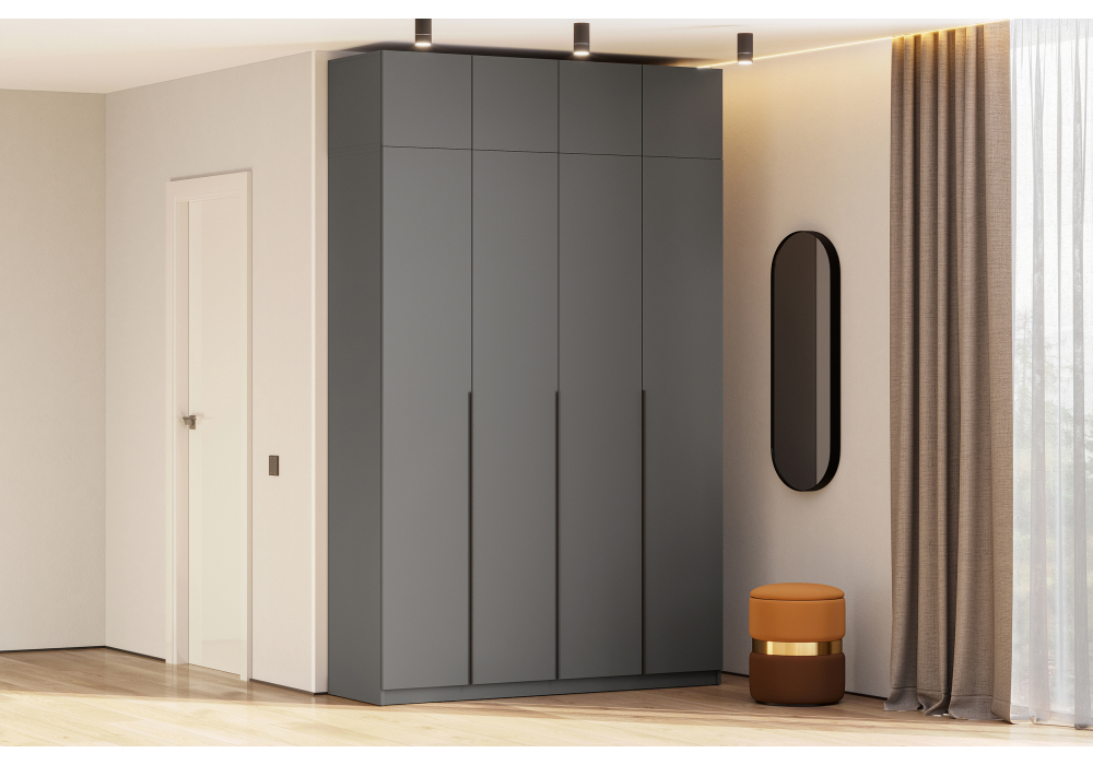 Шкаф комплектация 3 Woodville Даиго с антресолью графит серый текстурный 676152 в Тюмени