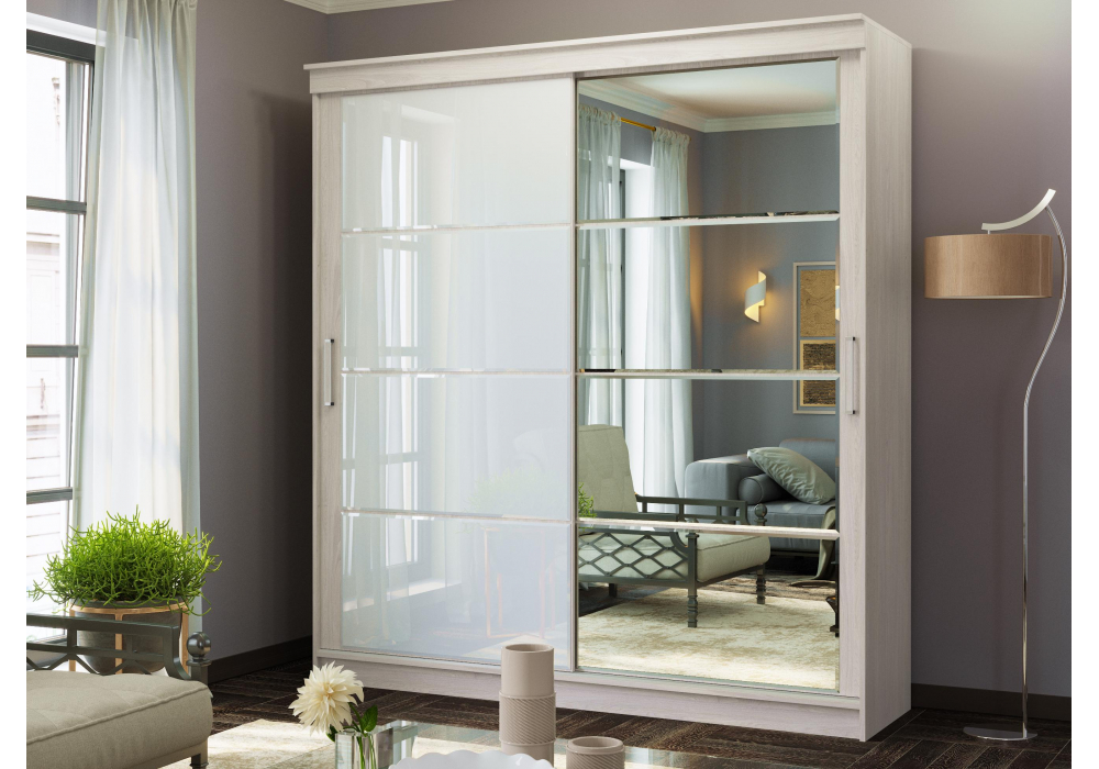 Купить "Шкаф-купе Woodville Москана-2 1,5м анкор светлый / зеркало / лакобель белый 614766"