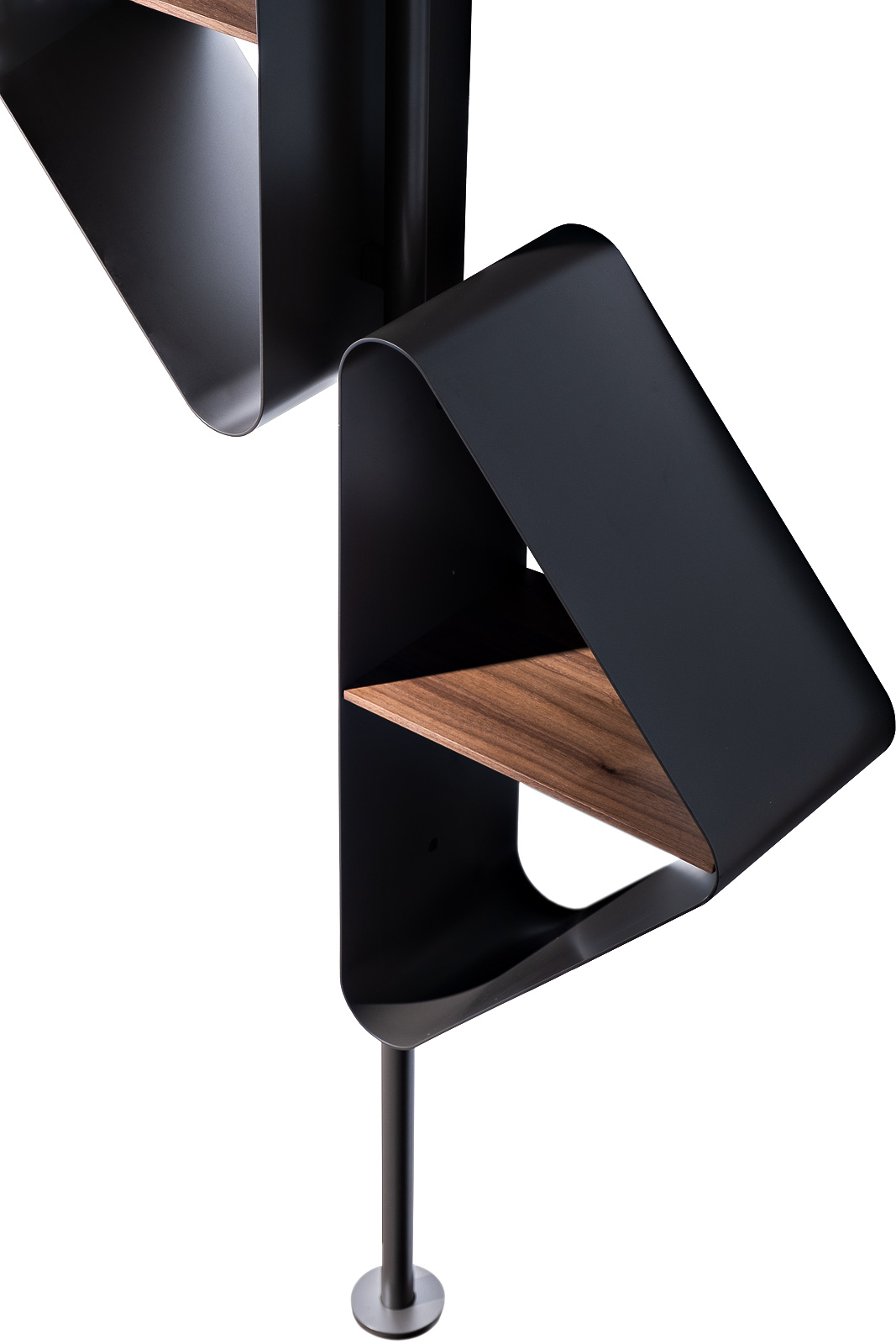 Выразительный декоративный стеллаж в сочетании металла и шпона создан для интерьеров с ярким характером и архитектурной подачей. "Пластичный" металлический каркас формирует динамичную геометрию, а тёплые деревянные полки смягчают графичность формы, создавая выразительный контраст материалов. Скульптурный силуэт делает модель самостоятельным арт-объектом в пространстве. Вертикальная конструкция превращает стеллаж для книг и декора в функциональный акцент для хранения аксессуаров, коллекционных предметов или любимых изданий. Модель особенно органично смотрится в интерьерах в стиле авангард, contemporary и авторский минимализм, подчёркивая смелость дизайнерского решения и индивидуальность пространства.