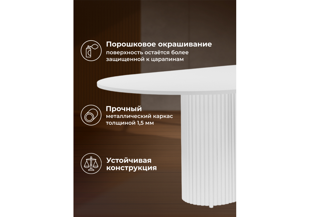Материал каркаса - металл; Материал столешницы - МДФ; Цвет ножек - белый; Ширина - 90; Высота - 75; Длина - 180;