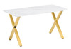 Толщина столешницы: 2,5 см. Материал каркаса - Металл; Материал ножек - Металл; Материал столешницы - Керамика; Цвет каркаса - Золотой; Цвет ножек - Золотой; Цвет столешницы - Белый; Ширина - 90; Высота - 77; Длина - 160;