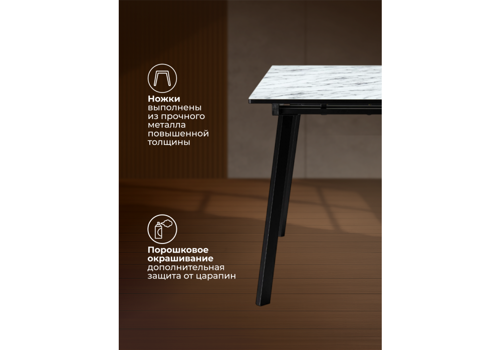 Стол стеклянный раскладной 110(140)х68х76 Woodville Агни мрамор белый / черный матовый 528558 в Тюмени