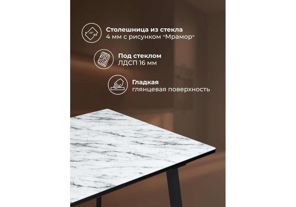 - Материал столешницы: стекло