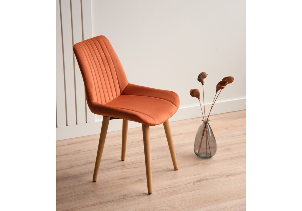 Материал каркаса - дерево; Материал сиденья - велюр; Материал обивки - велюр; Цвет ножек - натуральный; Ширина - 50; Глубина - 56; Высота - 82; Ширина сиденья - 47; Глубина сиденья - 42; Высота сиденья - 48;