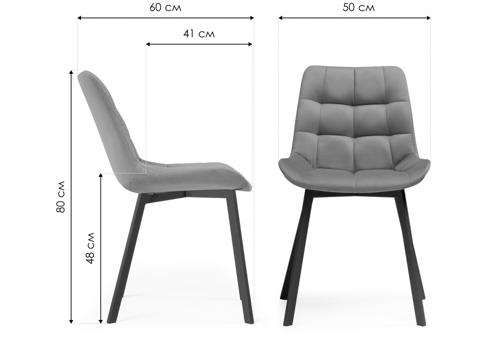 Материал каркаса - металл; Материал сиденья - велюр; Материал обивки - велюр; Цвет ножек - белый; Ширина - 50; Глубина - 60; Высота - 80; Ширина сиденья - 44; Глубина сиденья - 41; Высота сиденья - 48;
