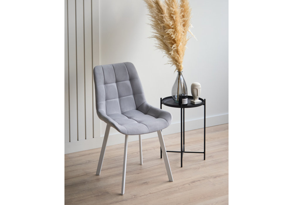 Материал каркаса - металл; Материал сиденья - велюр; Материал обивки - велюр; Цвет ножек - белый; Ширина - 50; Глубина - 60; Высота - 80; Ширина сиденья - 44; Глубина сиденья - 41; Высота сиденья - 48;