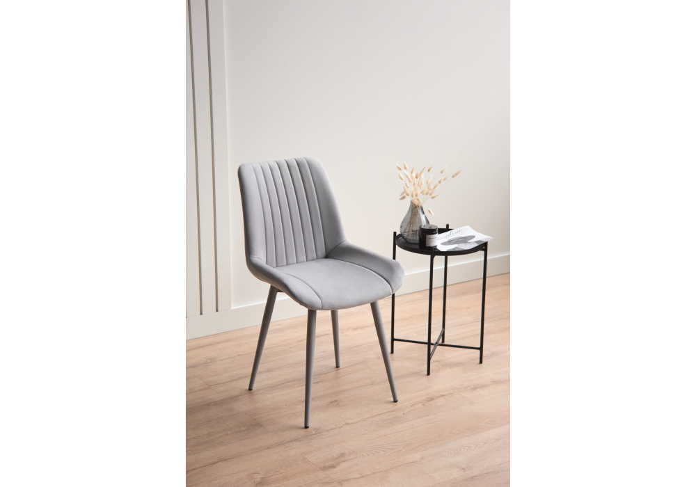 Материал каркаса - металл; Материал сиденья - велюр; Материал обивки - велюр; Цвет ножек - серый; Ширина - 50; Глубина - 56; Высота - 82; Ширина сиденья - 47; Глубина сиденья - 42; Высота сиденья - 48;