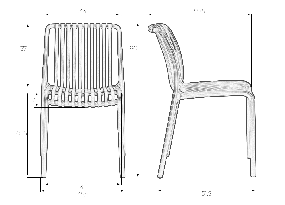 - Ширина сиденья: 455 мм