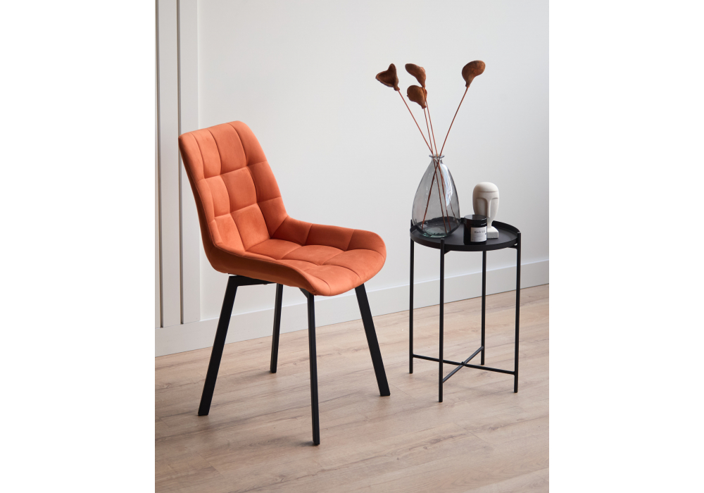 Материал каркаса - металл; Материал сиденья - велюр; Материал обивки - велюр; Цвет ножек - черный; Ширина - 50; Глубина - 60; Высота - 80; Ширина сиденья - 44; Глубина сиденья - 41; Высота сиденья - 48;