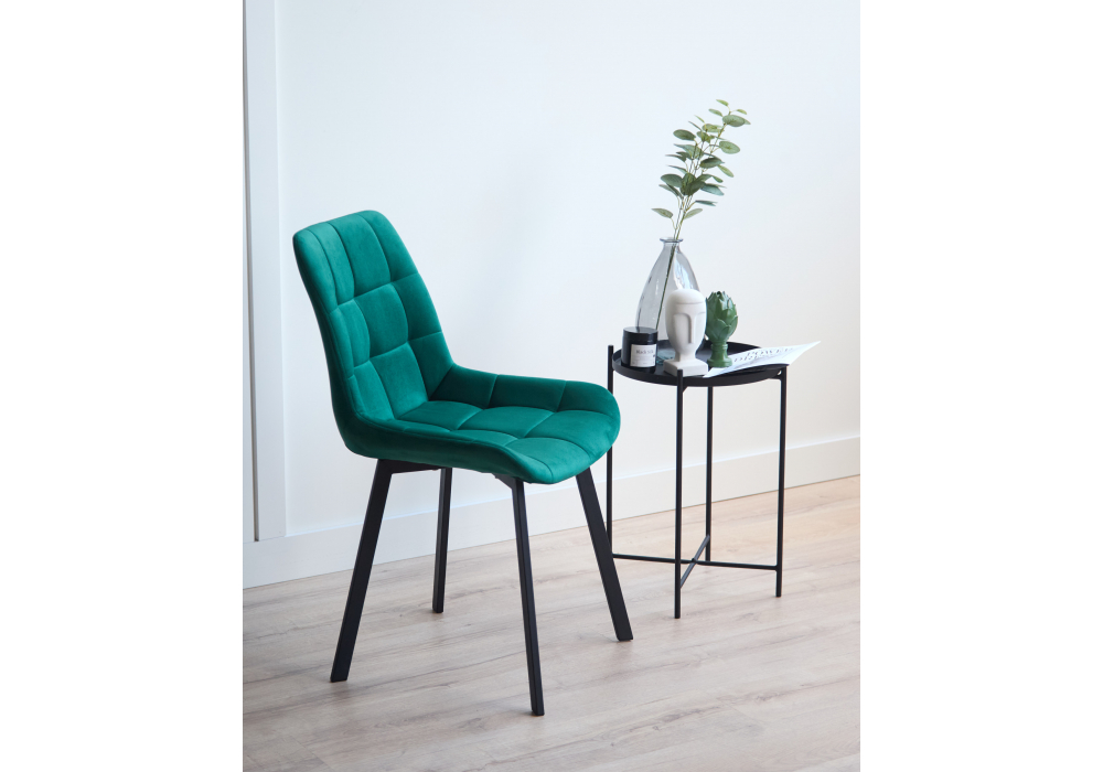 Материал каркаса - металл; Материал сиденья - велюр; Материал обивки - велюр; Цвет ножек - черный; Ширина - 50; Глубина - 60; Высота - 80; Ширина сиденья - 44; Глубина сиденья - 41; Высота сиденья - 48;