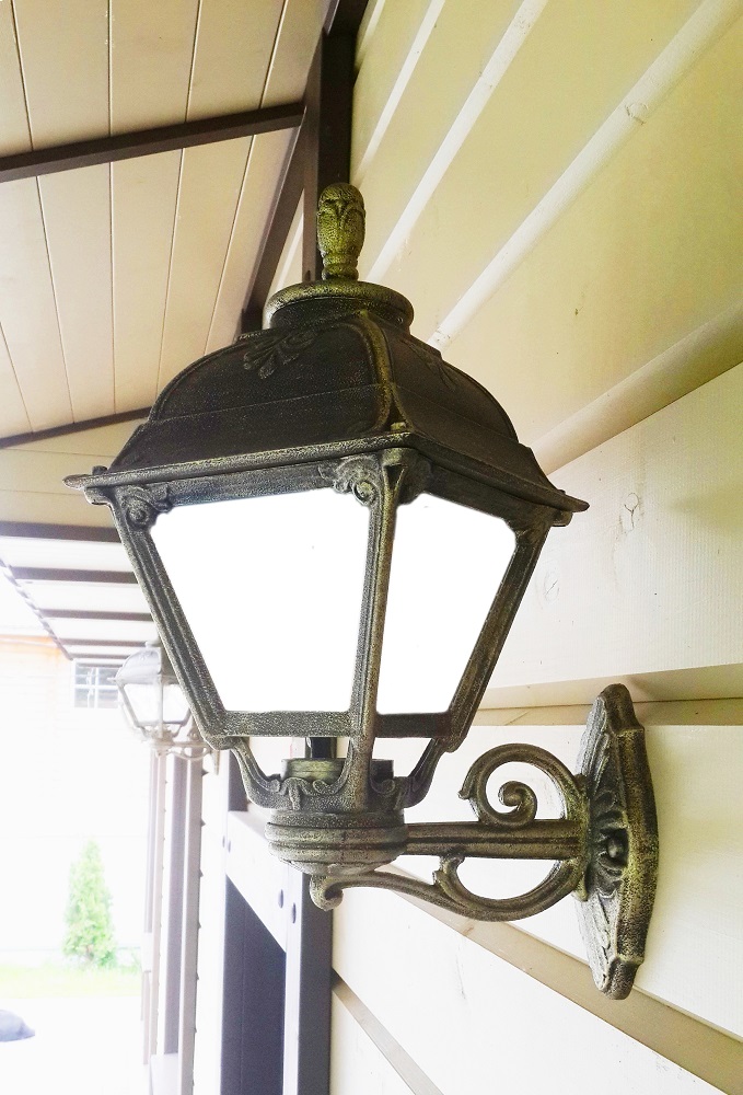 Светильники уличные настенные FUMAGALLI серии CEFA, модель CEFA/BISSO. Консольный уличный светильник для монтажа на стену. Настенный кронштейн BISSO малого размера и светильник CEFA. Используются для фасадного и архитектурного освещения в стиле "классика". Место установки уличных светильников - фасады, колонны и другие вертикальные поверхности исторических зданий, котеджей, загородных домов, церквей, а так же, другие места где требуется и возможна установка фонарей. Изготовлены в Италии, по уникальным технологиям "FUMAGALLI" из современного композитного полимера RESIN. Этот материал в 5 раз прочнее металла, не ржавеет, не окисляется, не выгорает на солнце, его не нужно красить. Все светильники пыле-влаго защищены по стандарту IP55 (Пылезащищенные, защита от водяных струй с любого направления). Рассеиватель выполнен из антивандального, не мутнеющего и не горючего PMMA (ПолиМетилМетаАкрилат). Срок службы светильника - не менее 20 лет. Температура использования от -60 до +90. В серии CEFA есть фонари в настенном (BISSO/CEFA, OFIR/CEFA, MIRRA/CEFA, PORPORA/CEFA) подвесном (SICHEM/CEFA) и наземном исполнении (MINILOT/CEFA, MIZAR.R/CEFA, IAFAET.R/CEFA, ALOE.R/CEFA, ARTU/CEFA, GIGI/CEFA, RICU/CEFA, RICU/ISSO/CEFA 2L, NEBO/CEFA, NEBO OFIR/CEFA 2L, NEBO OFIR/CEFA 3L) со столбами разной высоты, с разным количеством и конфигурацией голов. Консоли настенных фонарей и кронштейны светильников на столбах освщения могут устанавливаться вверх/вниз. Столбы выше 150 см имеют в основе мощную стальную трубу с двойной оцинковкой. При заказе требуется выбрать цвет корпуса, цвет плафона и тип патрона. По стилю и дизайну серия уличных светильников CEFA похожа на светильники большого размера SIMON и на светильники очень большого размера (Гранд) PIETRO. По размеру CEFA относится к средним светильникам как серия RUT, SALEM и GLOBE 300.