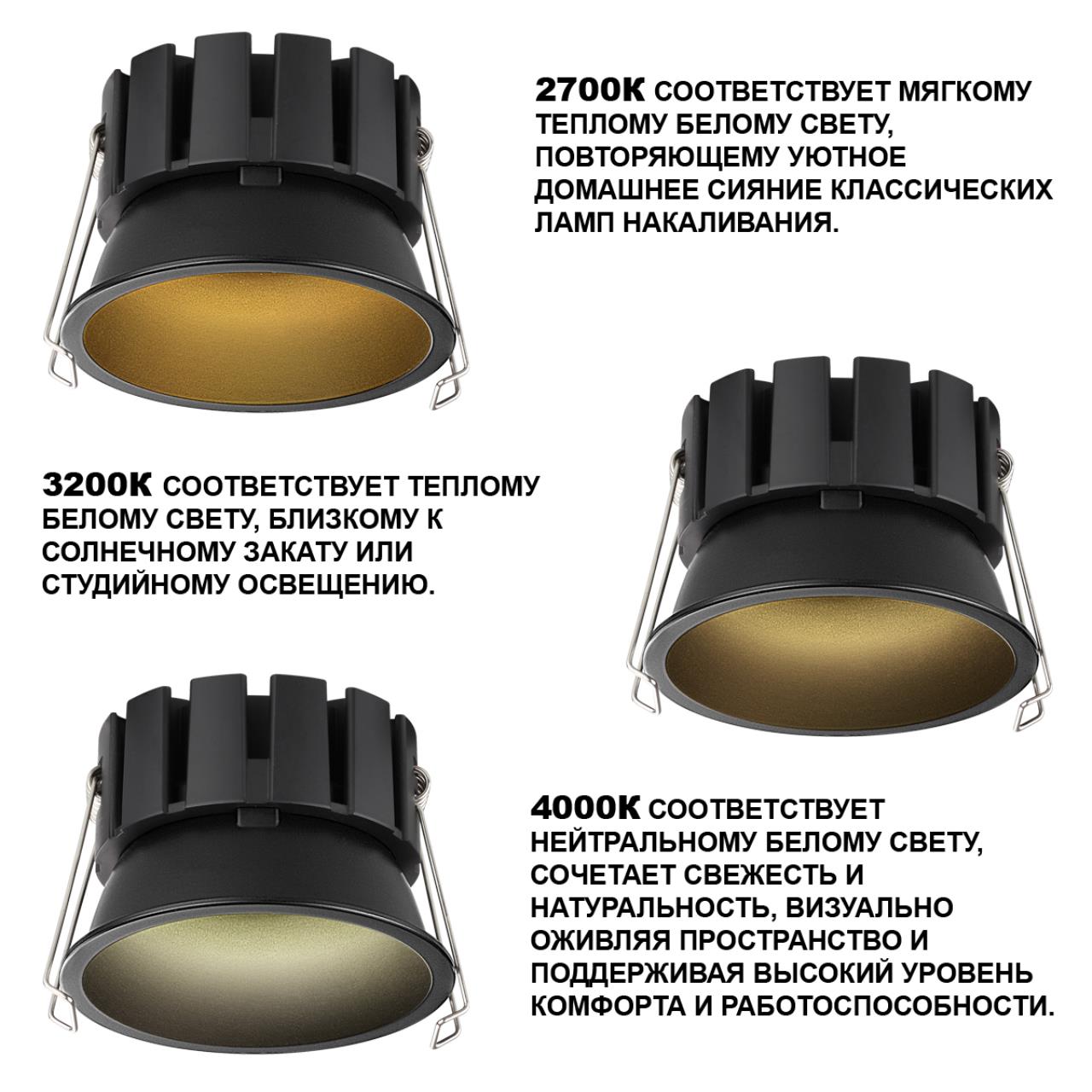 Купить "Светильник встраиваемый светодиодный с переключателем цветовой температуры Novotech SOLIS 359860 черный"