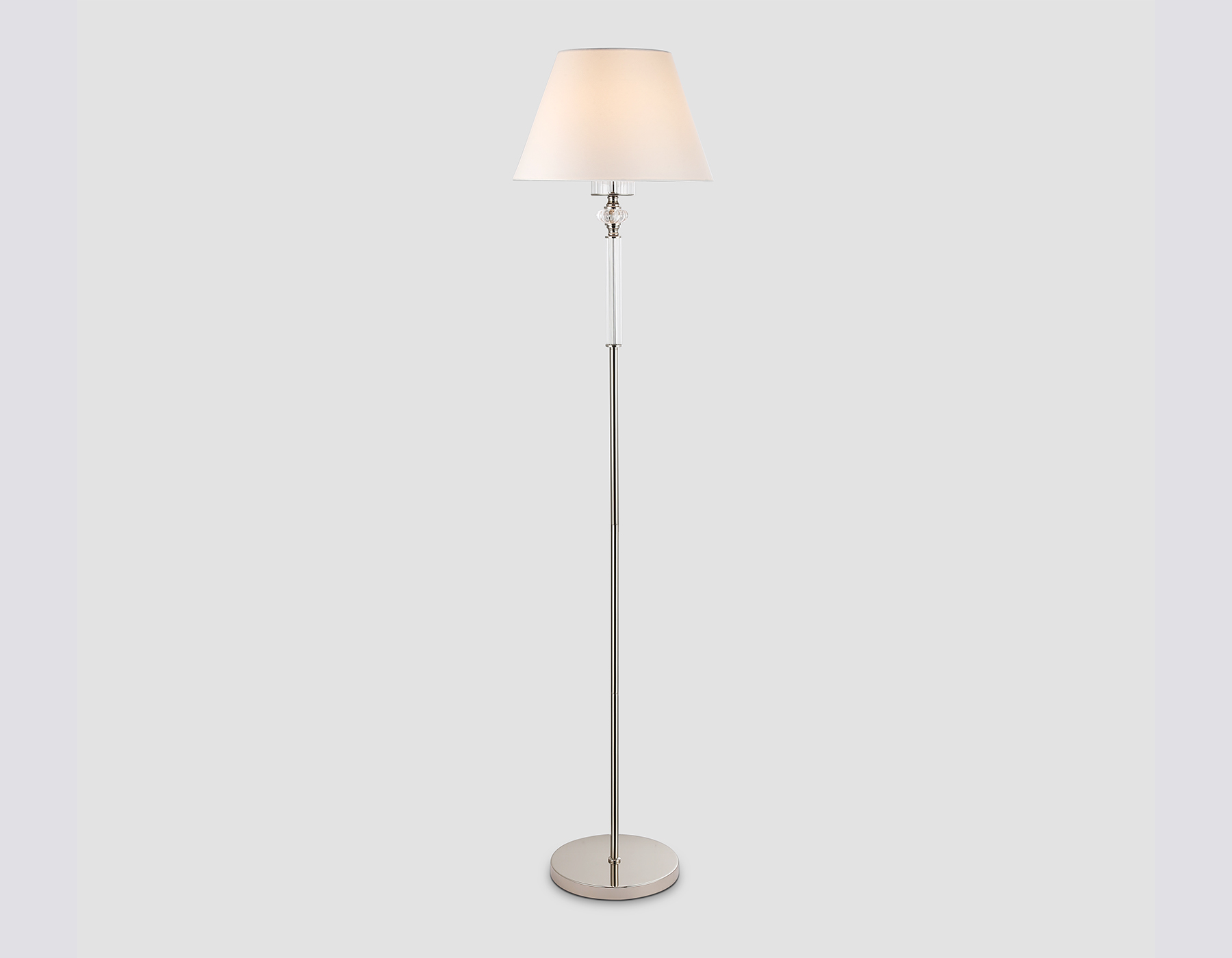 Напольный светильник с абажуром и хрусталем из коллекции HIGH LIGHT. Модель LH71008 представлена в стиле неоклассика. Светильник выполнен из металла цвета никель, тканевого плафона белого цвета и декорирован превосходным прозрачным хрусталем. Для данной модели подойдут лампы с цоколем Е27. Светильник будет прекрасным дополнением в любом помещении.