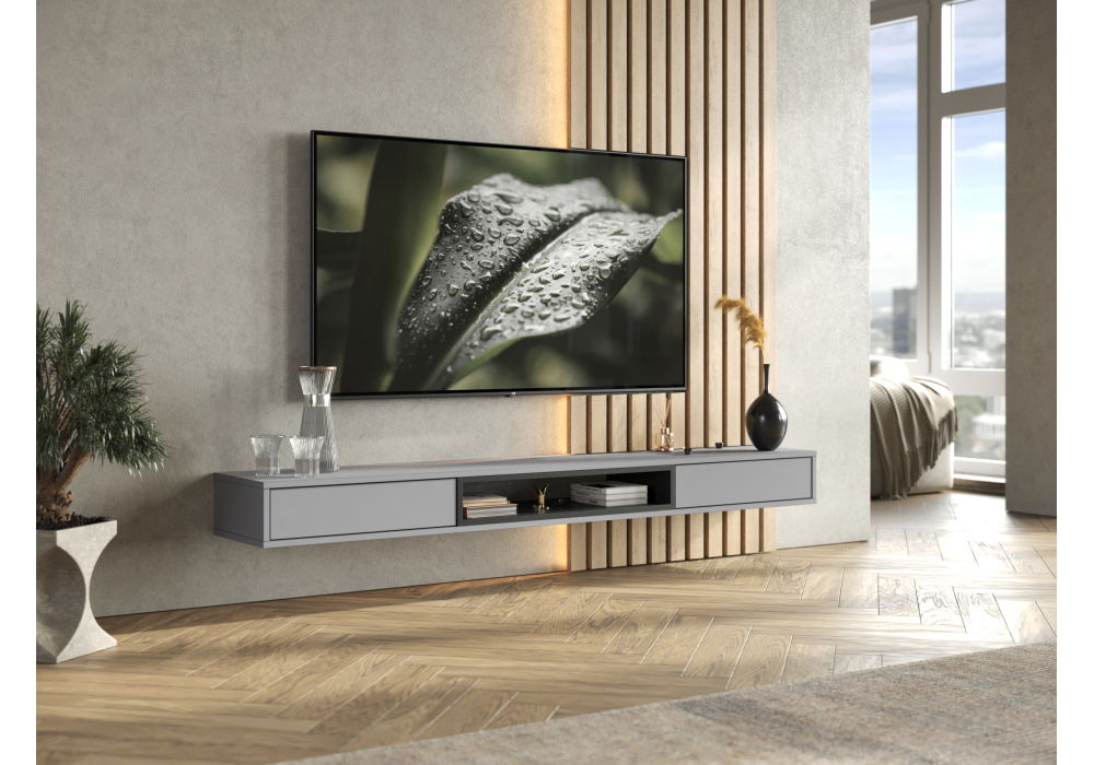 Купить "ТВ-тумба Woodville Делора 1,8м шиншилла серая / черный 674721"