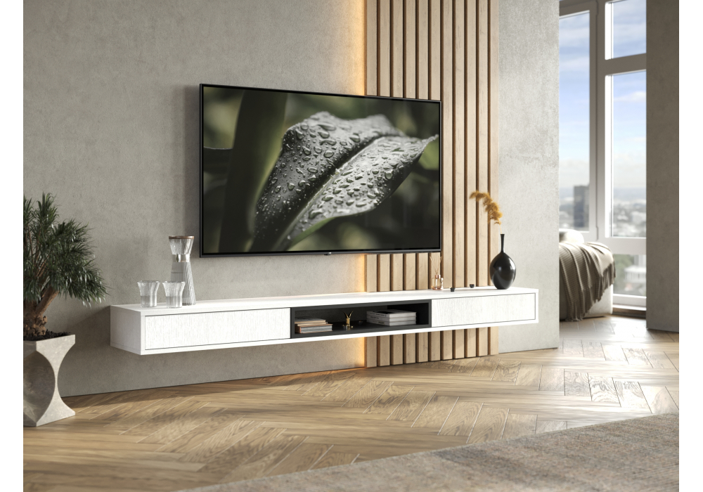 Купить "ТВ-тумба Woodville Делора 2,0м белый / черный 674726"