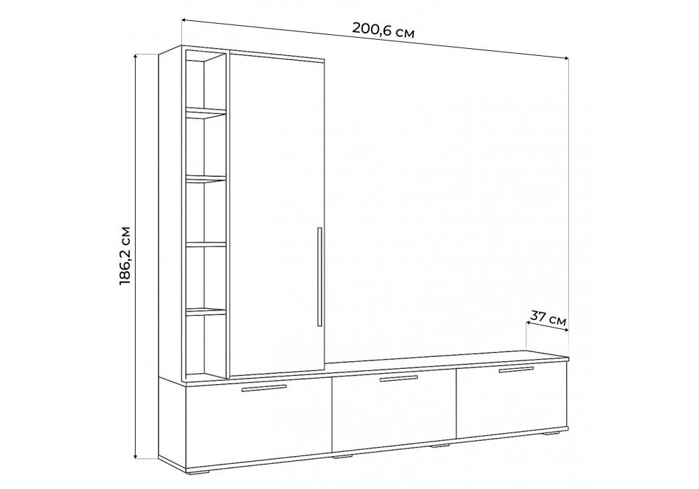Материал каркаса - ЛДСП; Ширина - 200,6; Глубина - 37; Высота - 186,2;